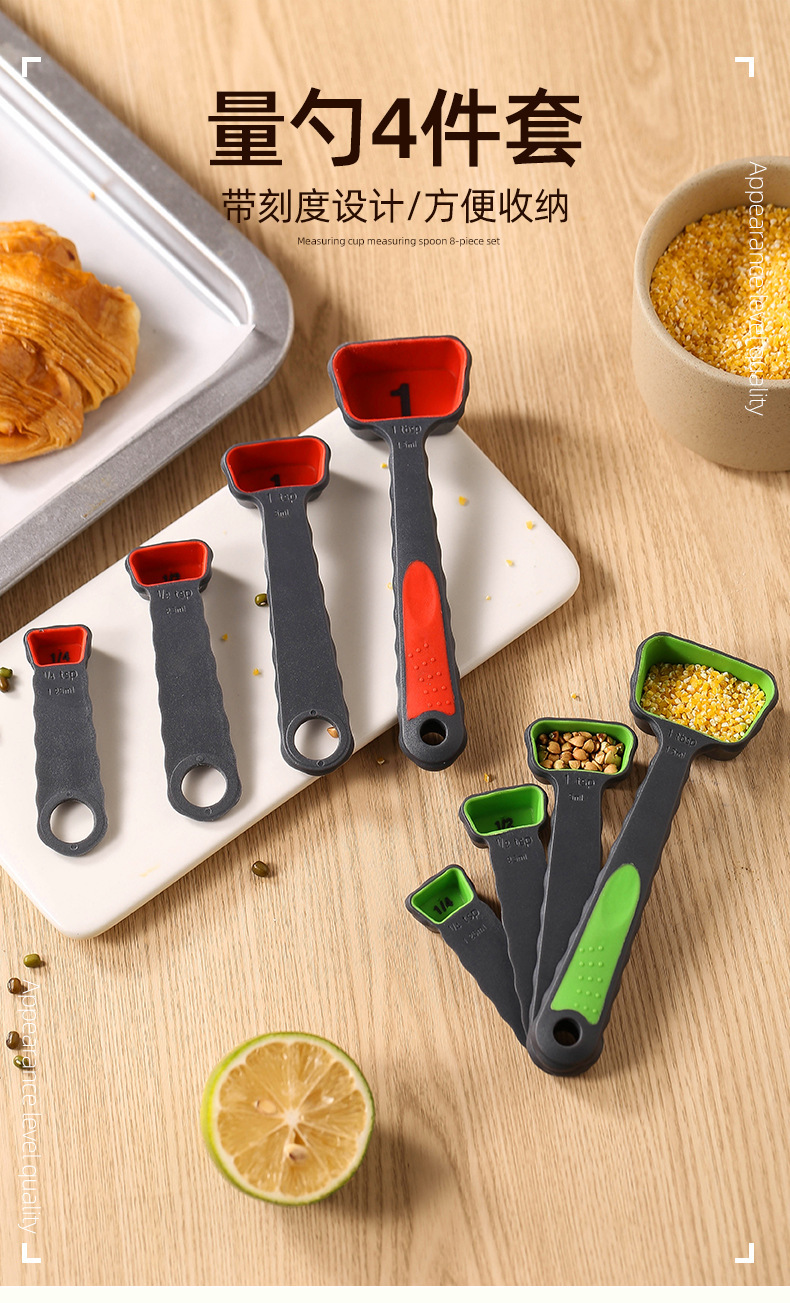 국경 간 인기 접이식 측정 컵 및 측정 스푼 4피스 세트 식품 등급 실리콘 베이킹 측정 스푼 베이킹 도구 플라스틱 새겨진스토어 가기