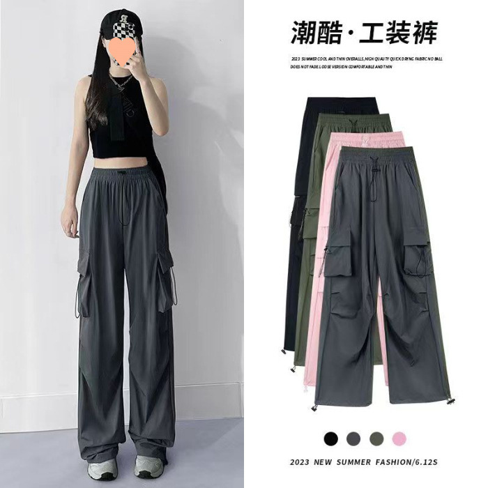 국경 간 빠른 건조 작업복 여성의 2024 봄 새로운 얇은 충전 작은 넓은 다리 등산 포켓 스포츠 바지