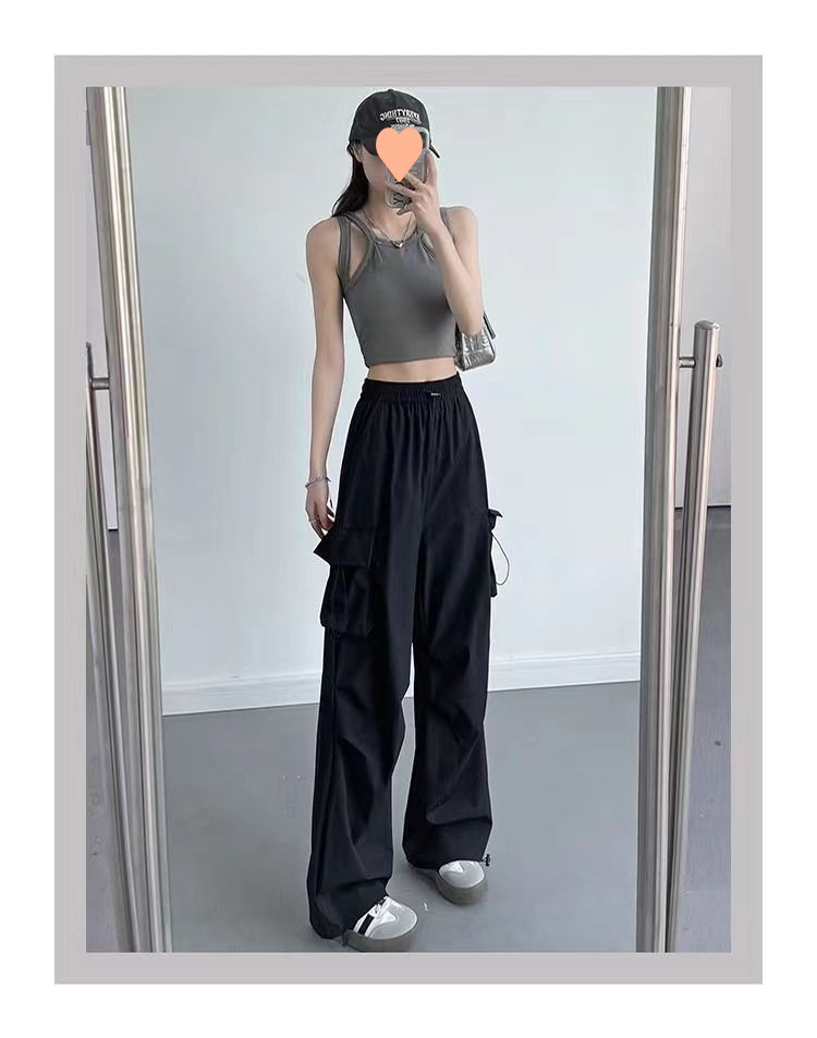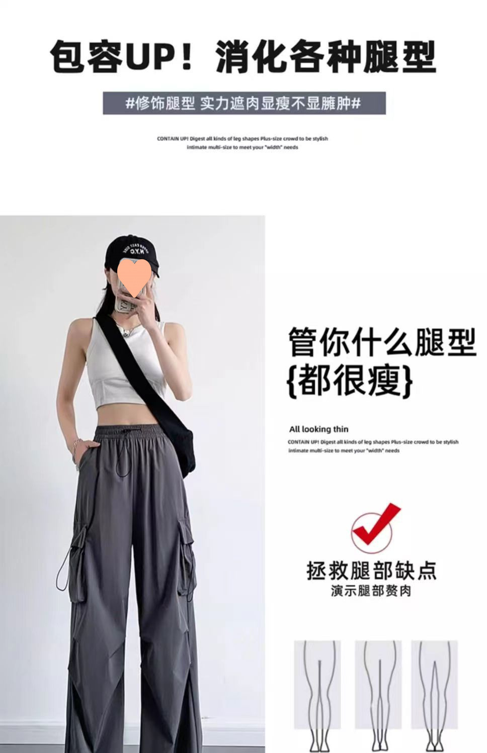 국경 간 빠른 건조 작업복 여성의 2024 봄 새로운 얇은 충전 작은 넓은 다리 등산 포켓 스포츠 바지스토어 가기