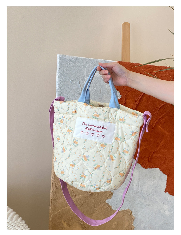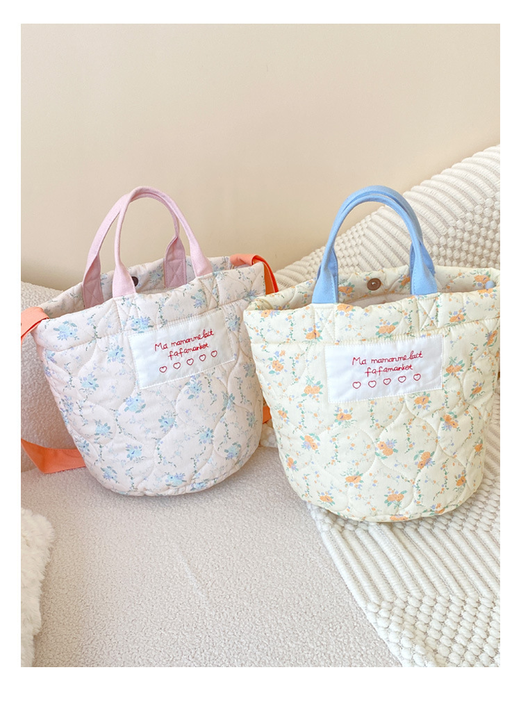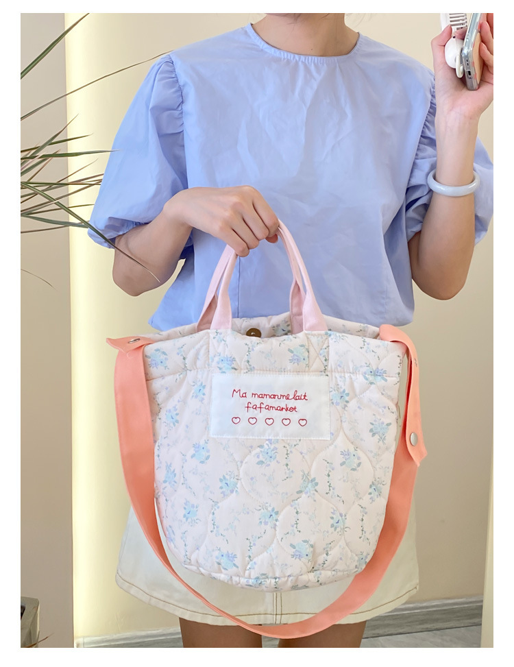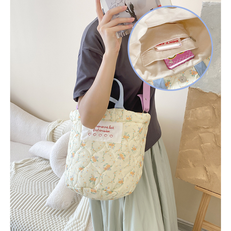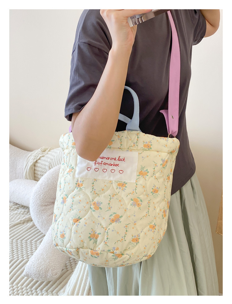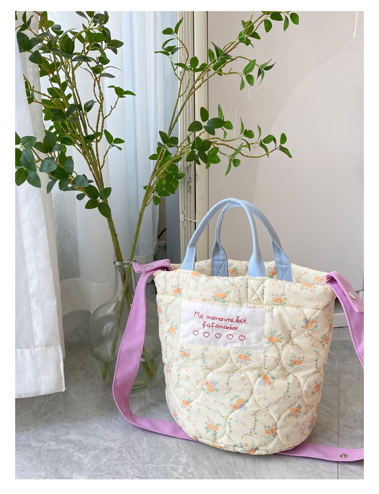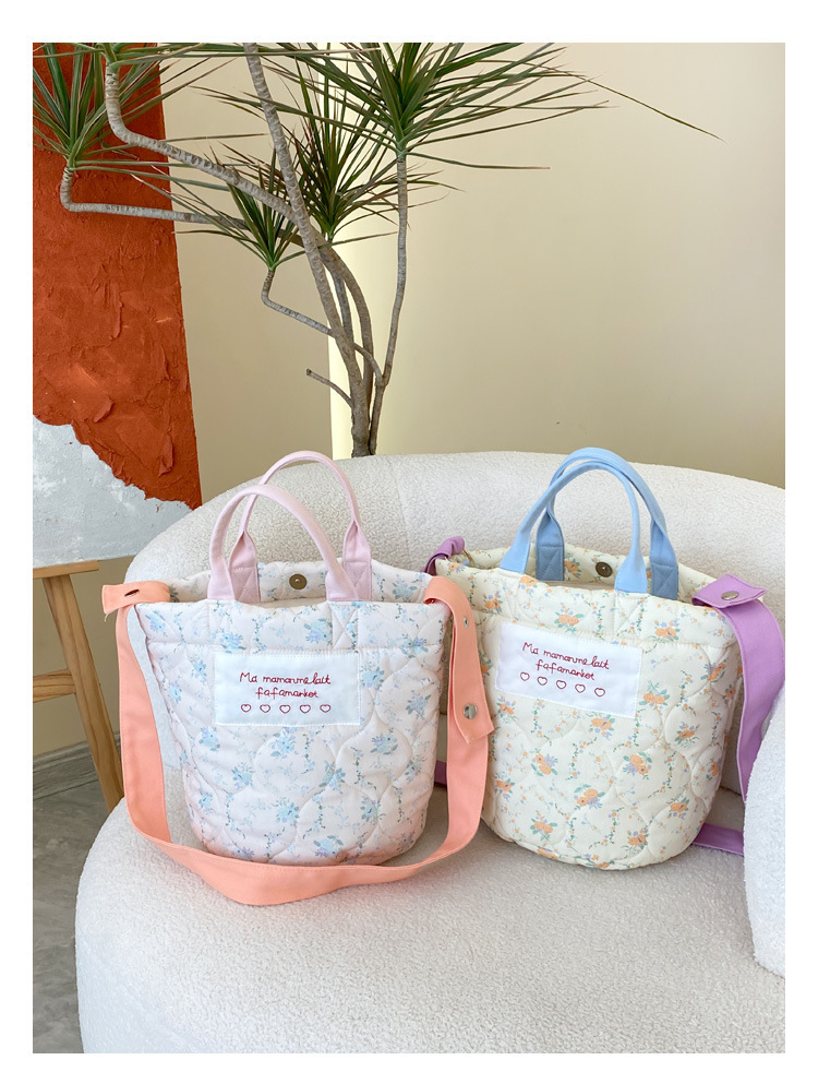 대용량 크로스 바디 핸드백 핸드백 복고풍 꽃 미라 거리 사진 원단 한국식 Seam 여성용 가방 버킷 백스토어 가기