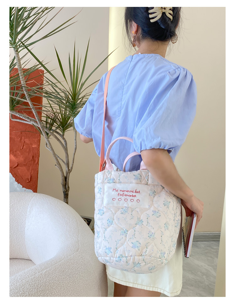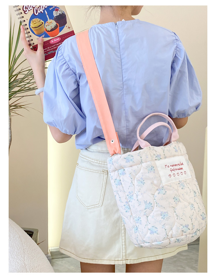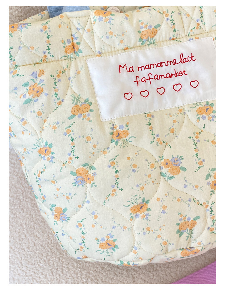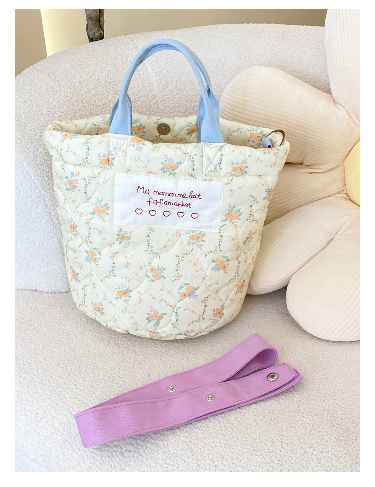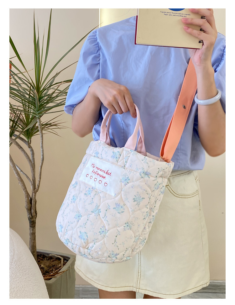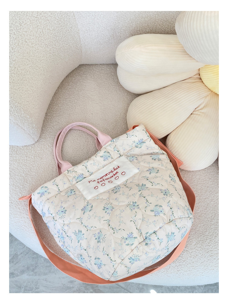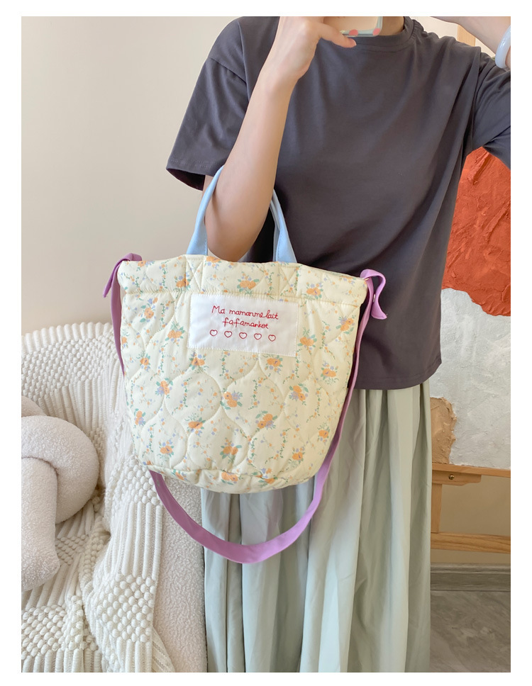 대용량 크로스 바디 핸드백 핸드백 복고풍 꽃 미라 거리 사진 원단 한국식 Seam 여성용 가방 버킷 백스토어 가기