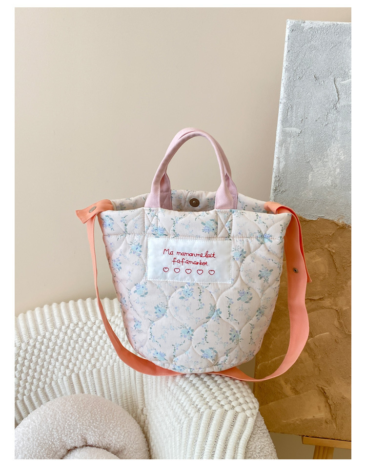 대용량 크로스 바디 핸드백 핸드백 복고풍 꽃 미라 거리 사진 원단 한국식 Seam 여성용 가방 버킷 백