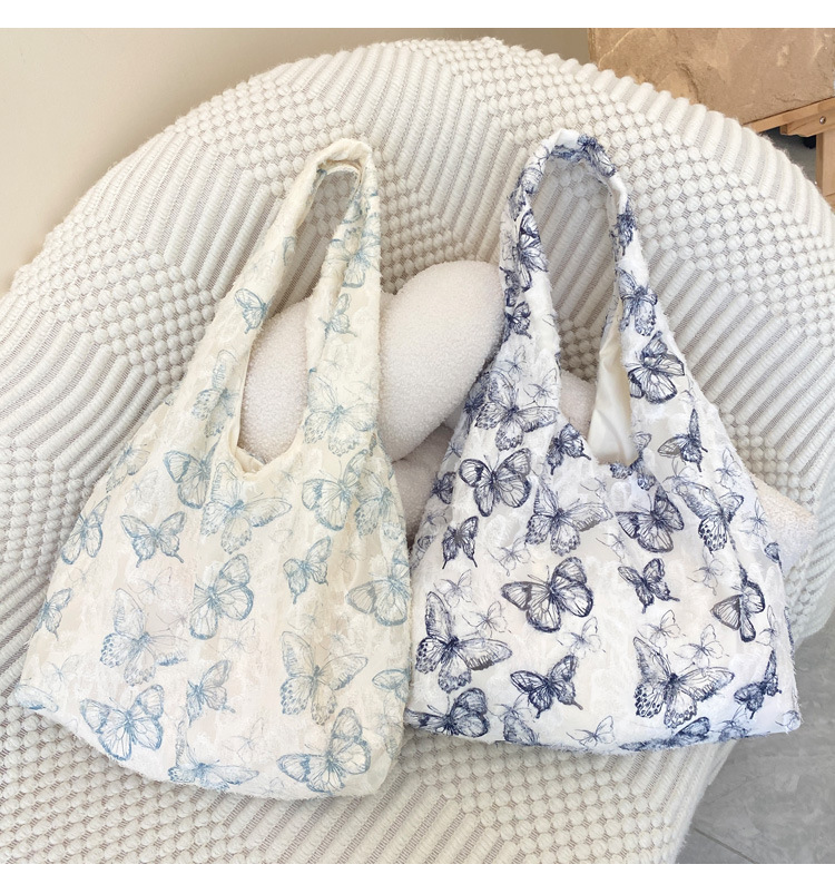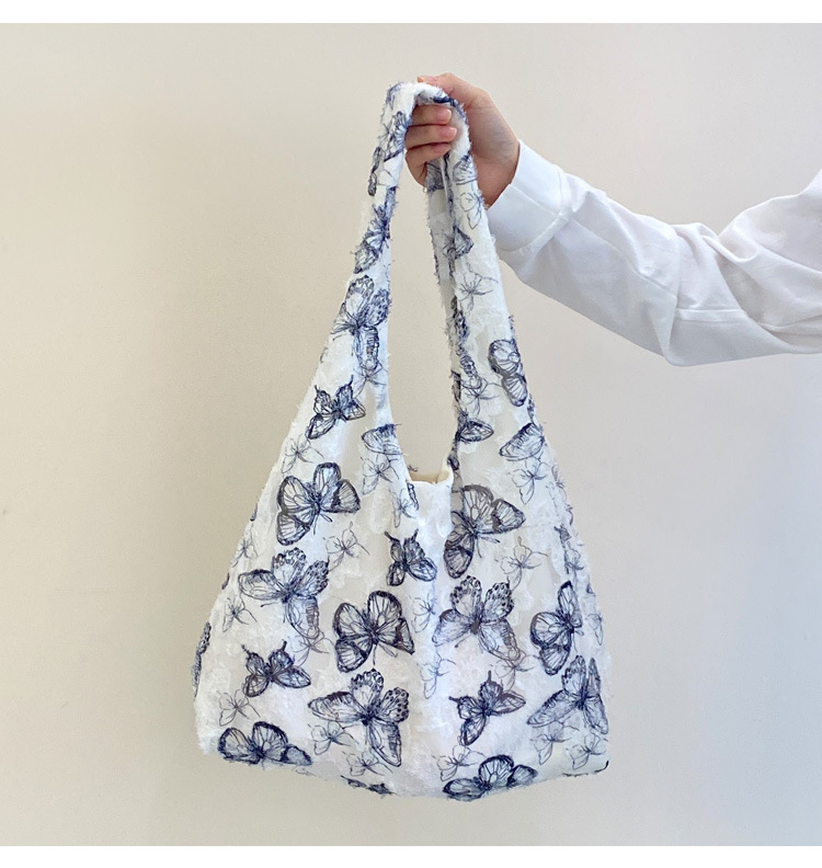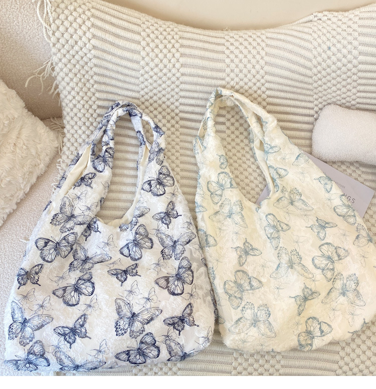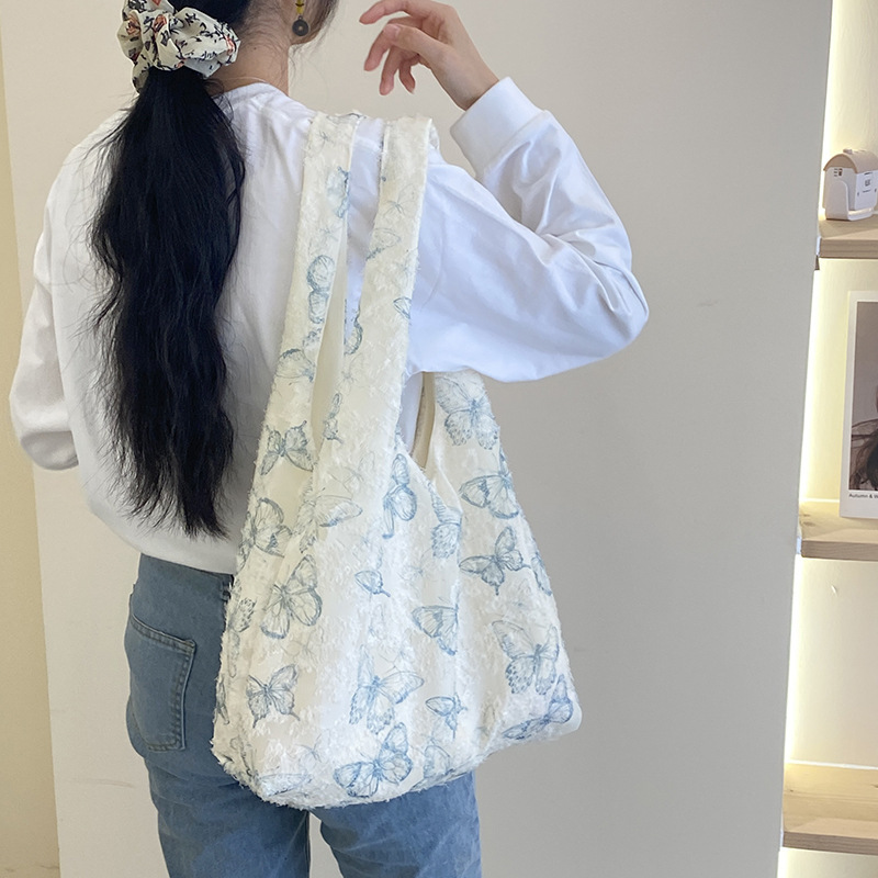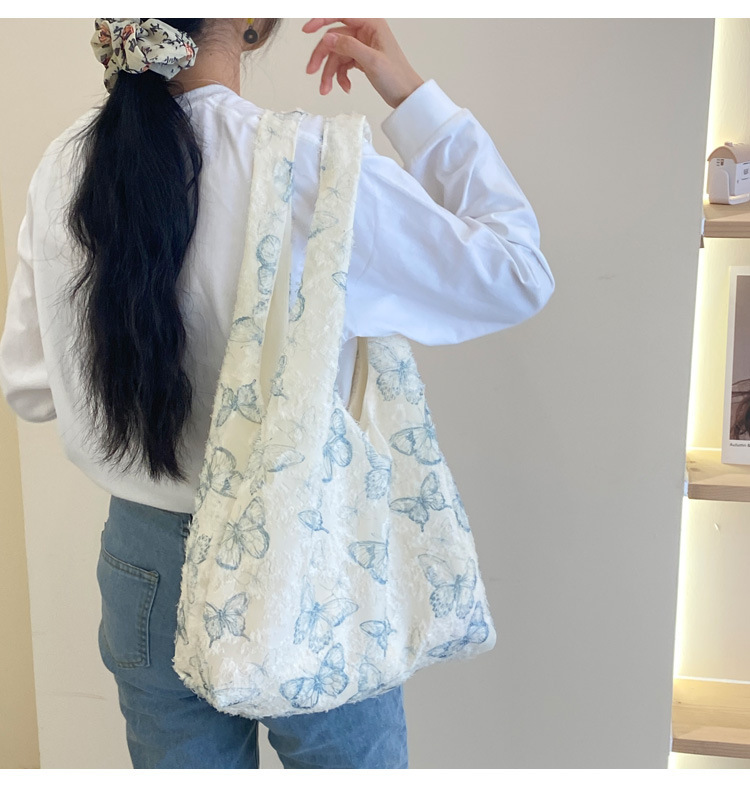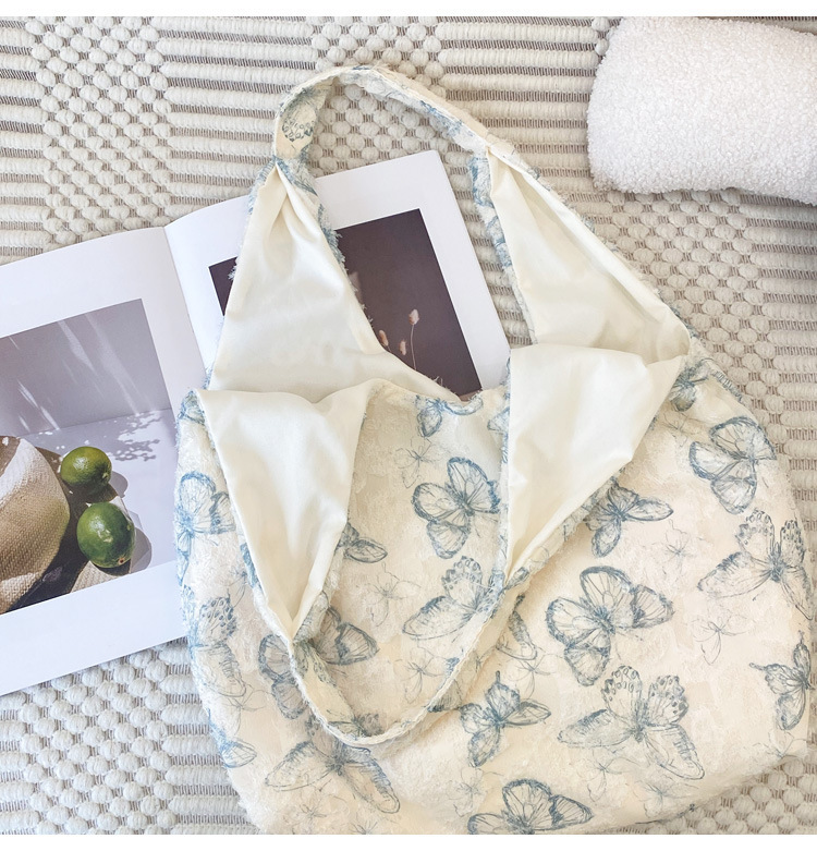 2024 여름 새로운 핸드 백 대용량 어깨 가방 게으른 돛 헝겊 가방 레이스 나비 학생 휴가 가방스토어 가기