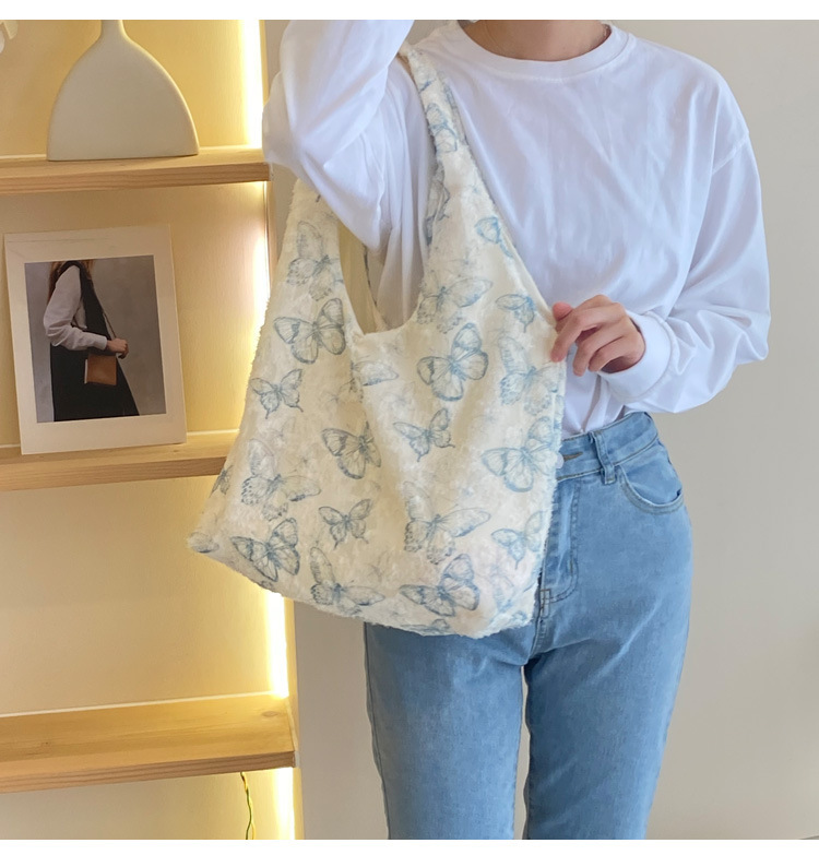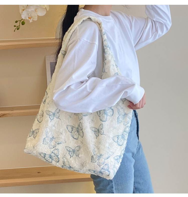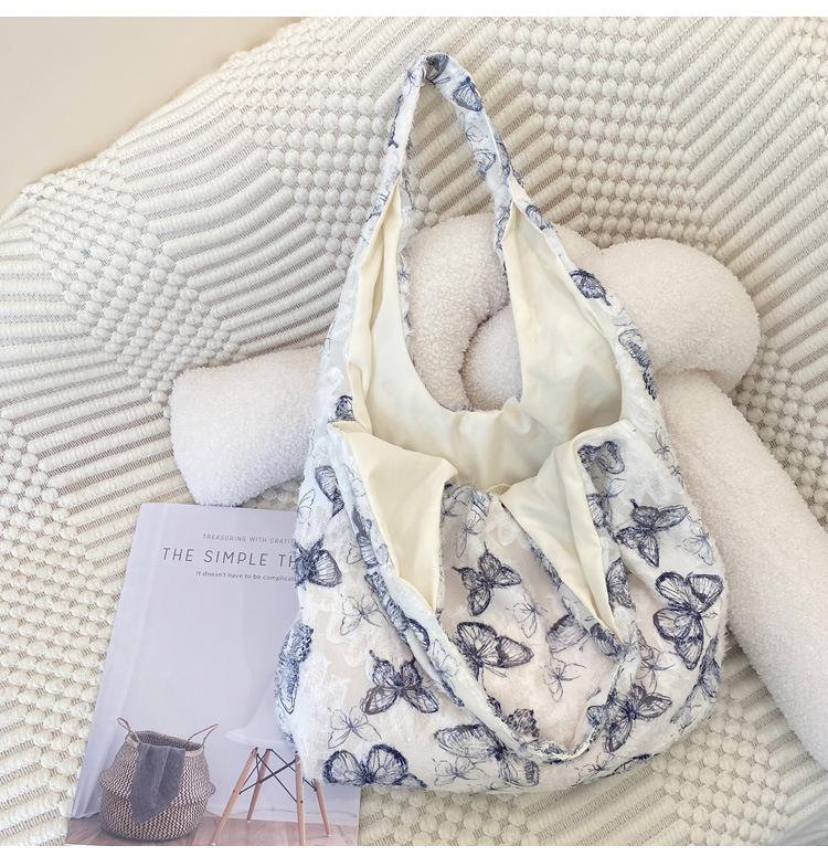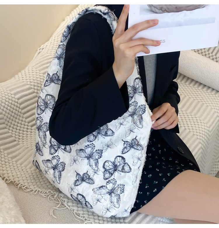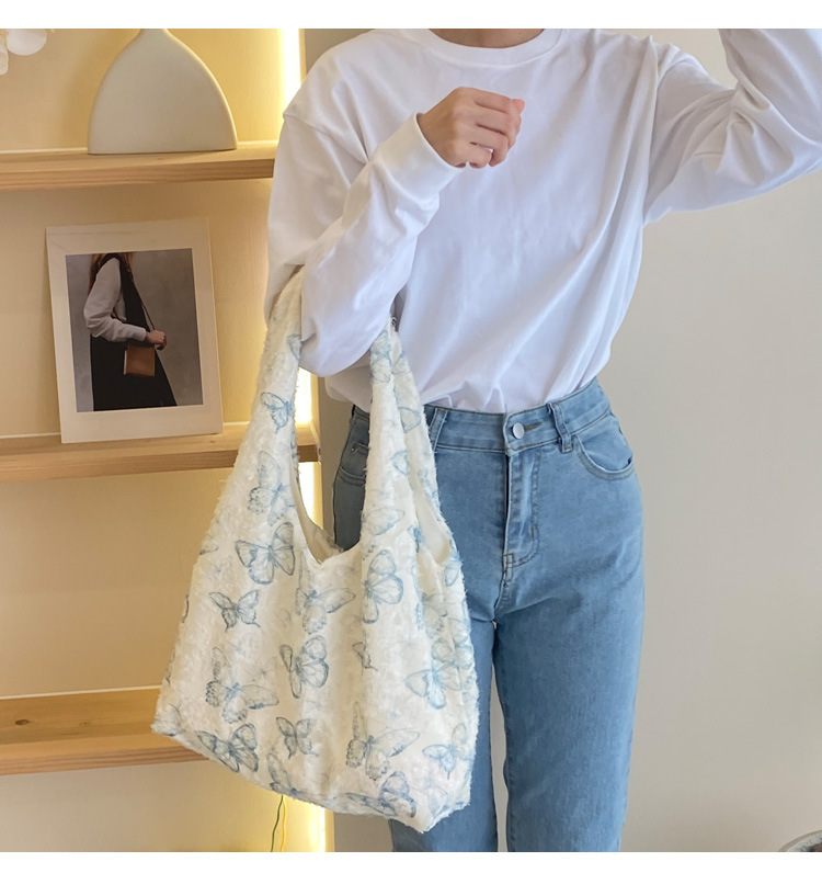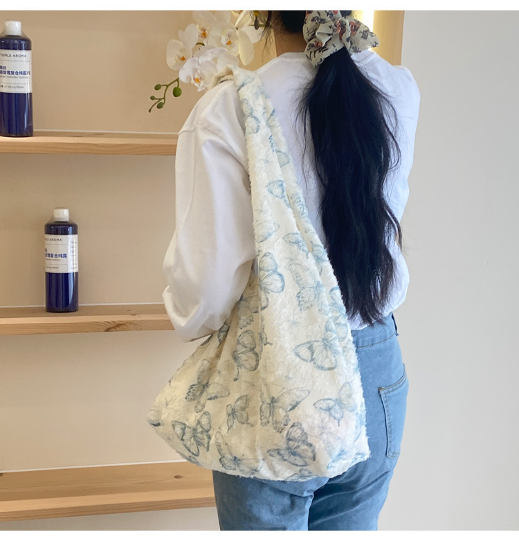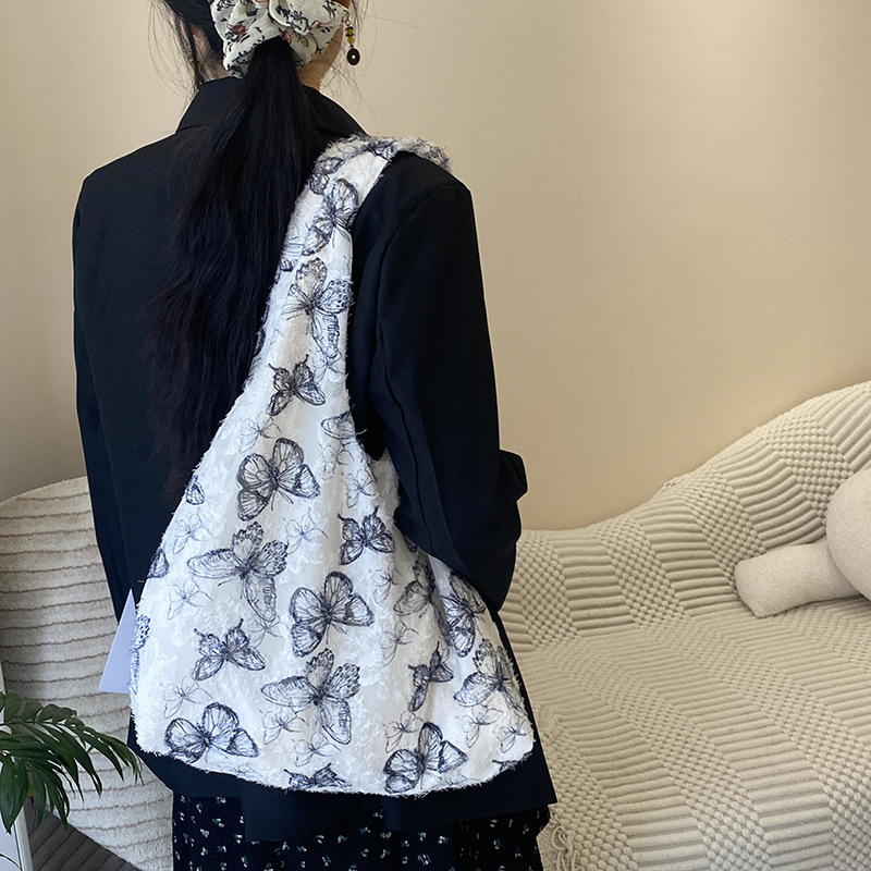 2024 여름 새로운 핸드 백 대용량 어깨 가방 게으른 돛 헝겊 가방 레이스 나비 학생 휴가 가방스토어 가기