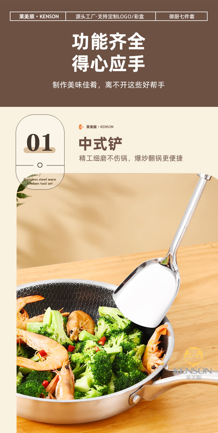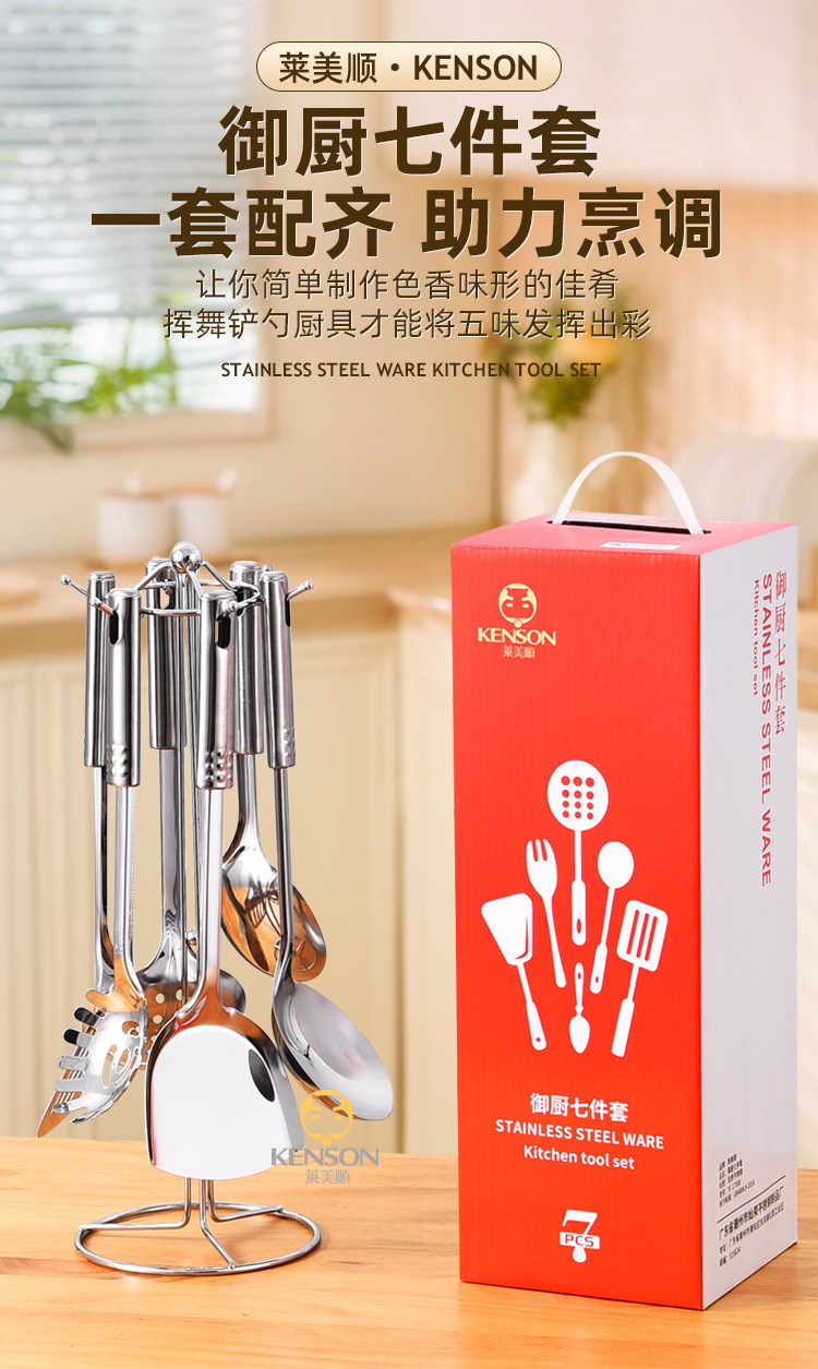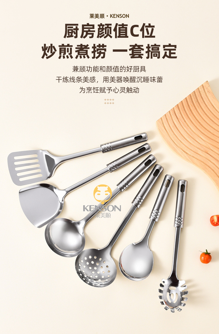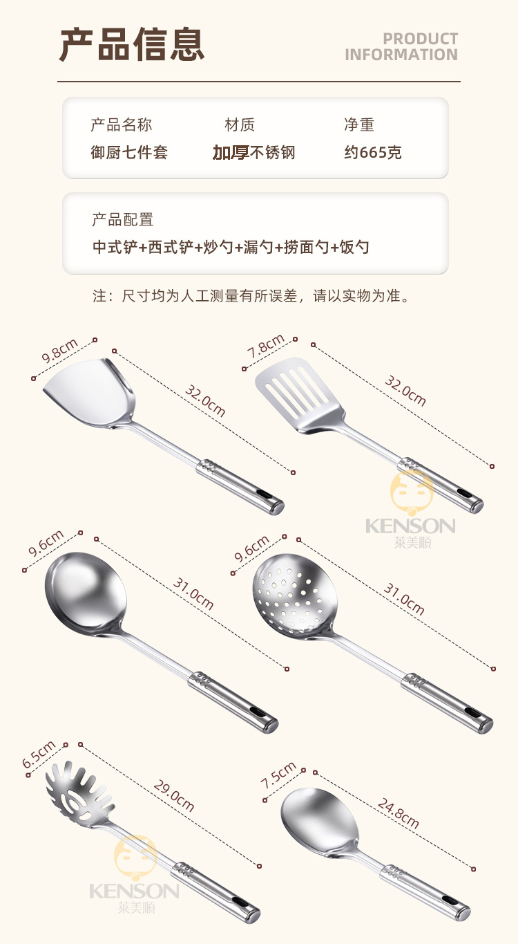 스테인레스 스틸 주방 용품 7 피스 세트 요리 스푼 주걱 식기 주방 용품 요리 주걱 수프 스푼 소쿠리 이벤트 선물스토어 가기