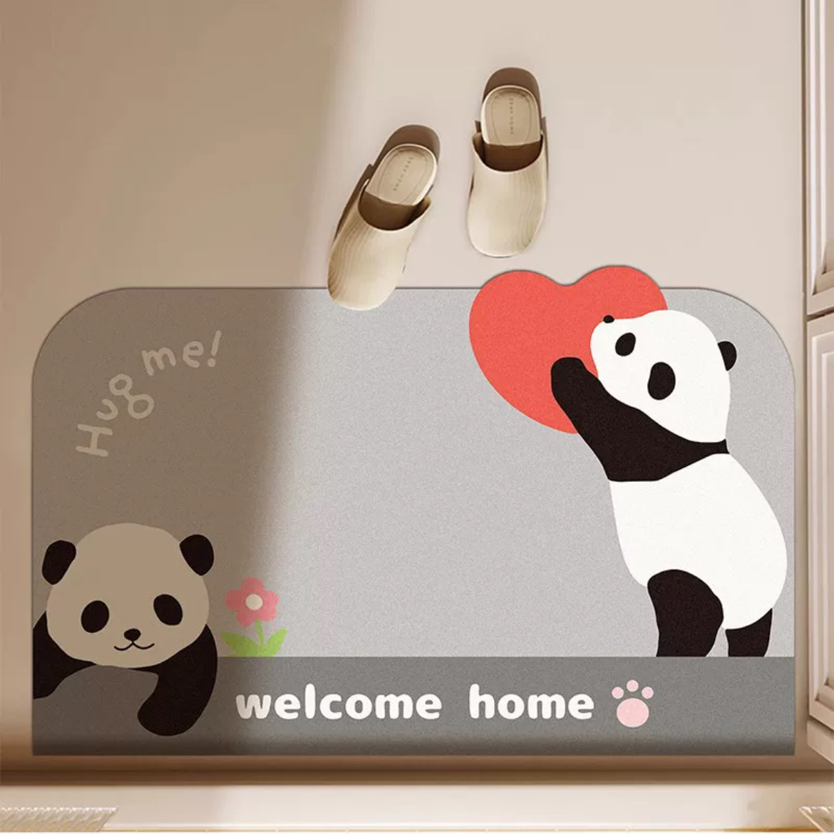 Diatom 진흙 화장실 흡수성 발 매트 만화 귀여운 팬더 카펫 빠른 건조 욕실 미끄럼 방지 바닥 매트 먼지 방지 발 매트스토어 가기