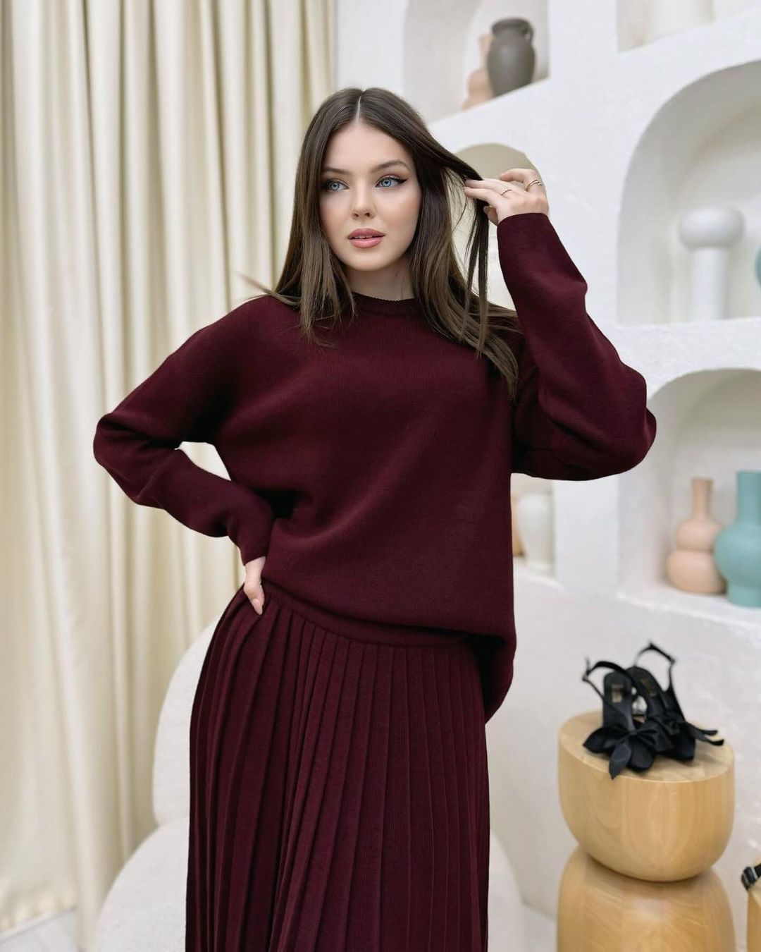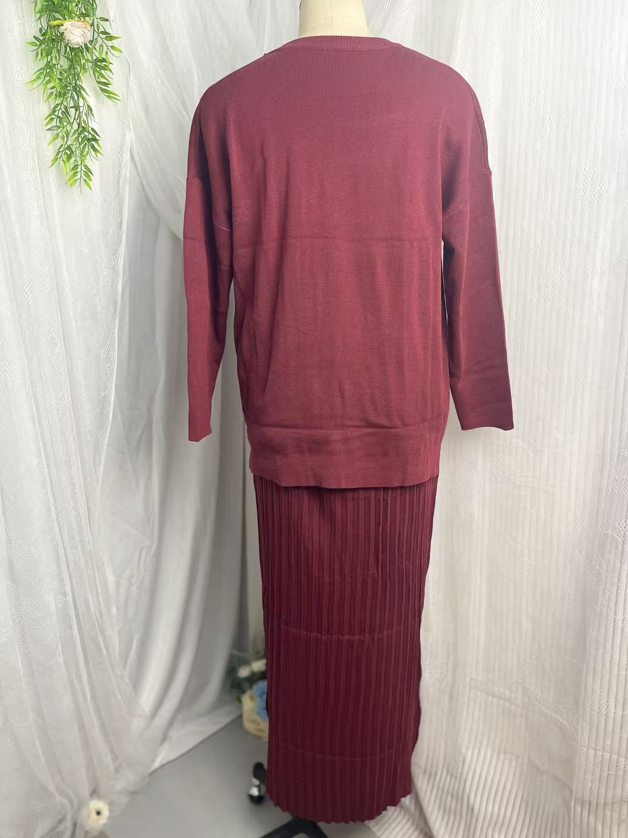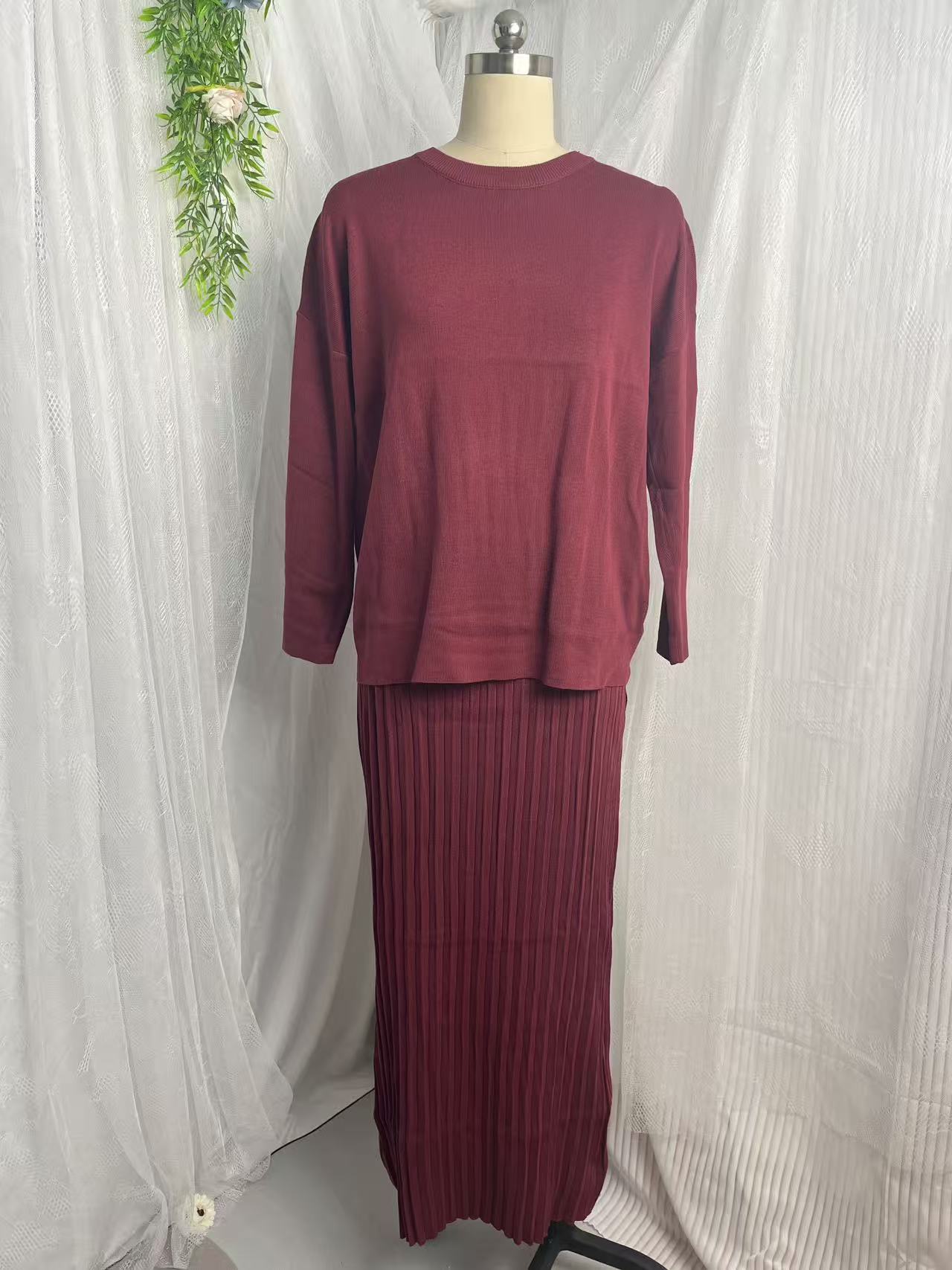 가을 겨울 신상 유럽풍 해외 무역 고급스러운 단색 라운드넥 니트 풀오버 스커트 세트