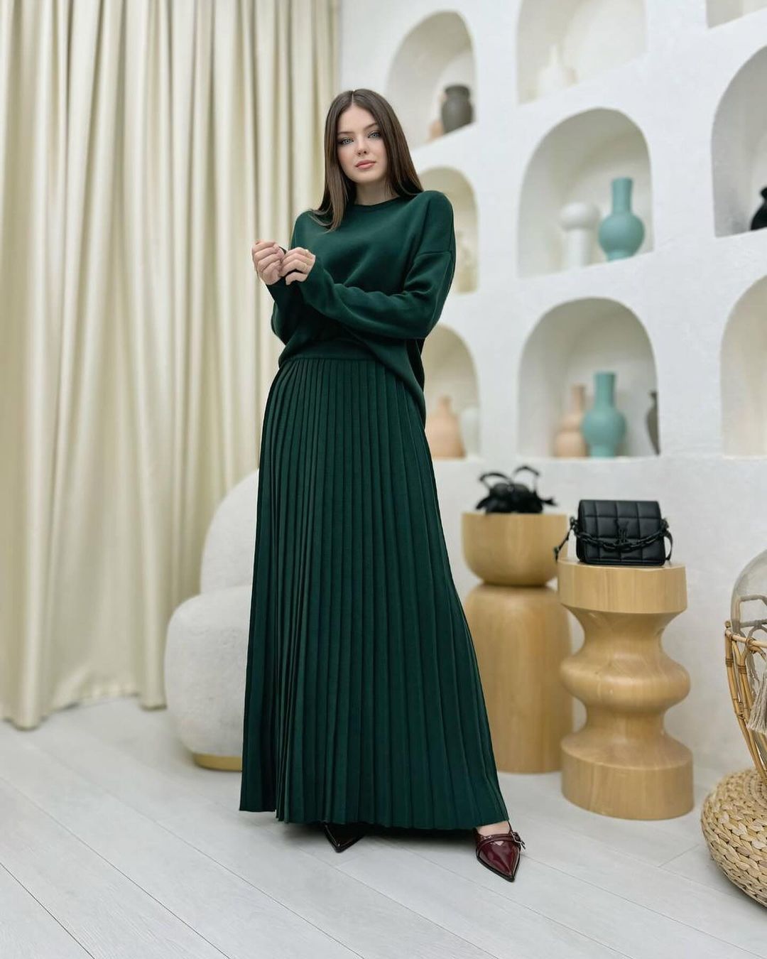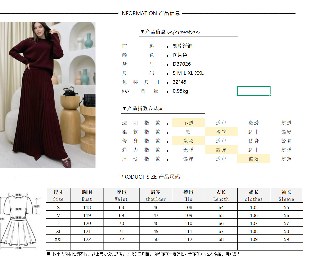 가을 겨울 신상 유럽풍 해외 무역 고급스러운 단색 라운드넥 니트 풀오버 스커트 세트스토어 가기
