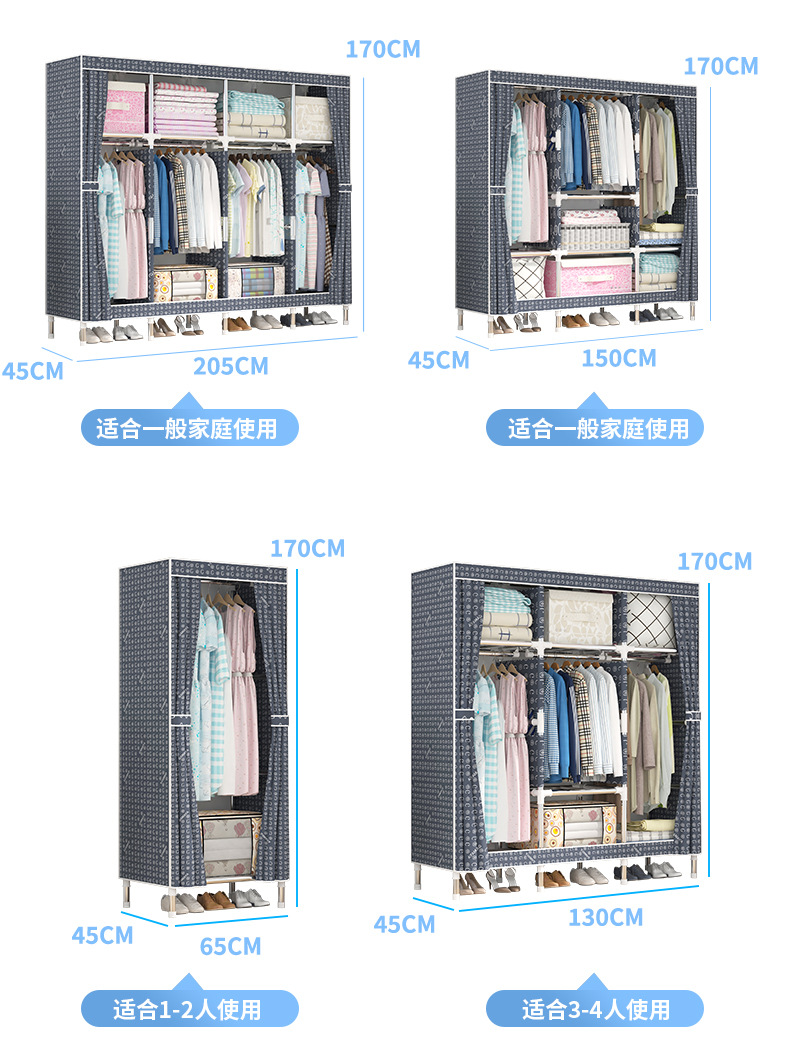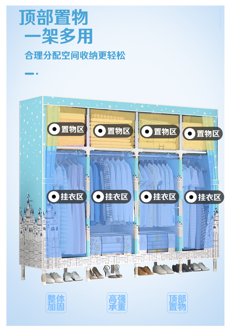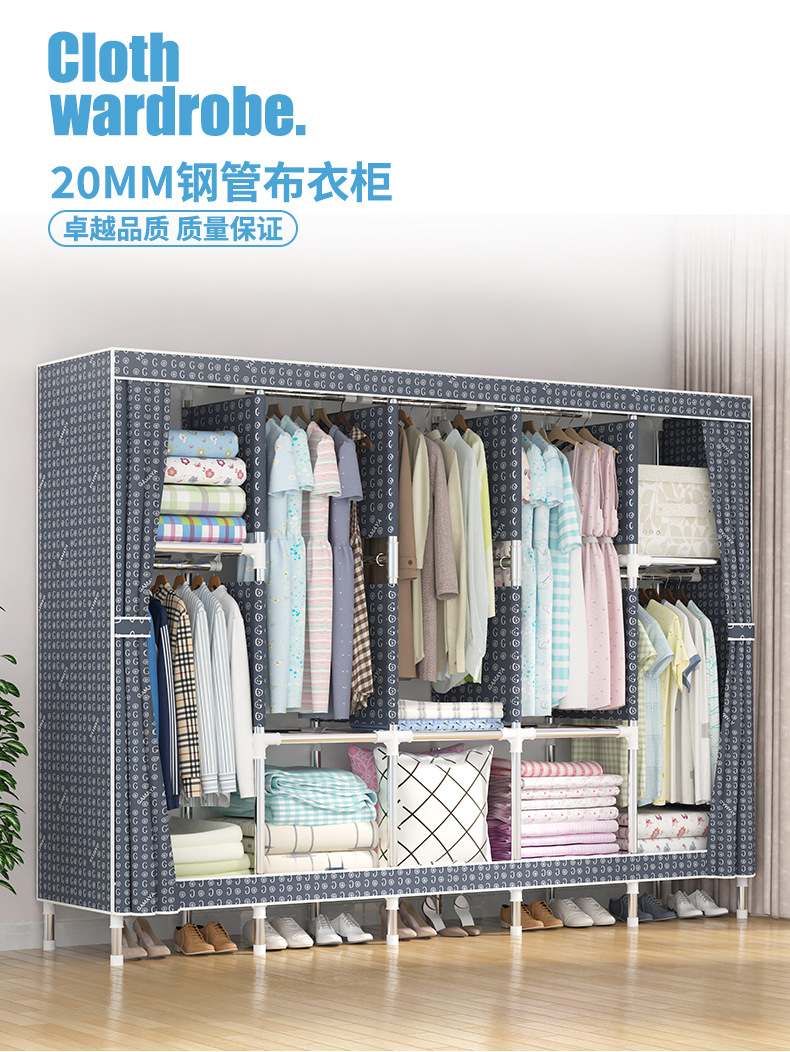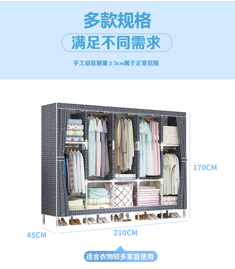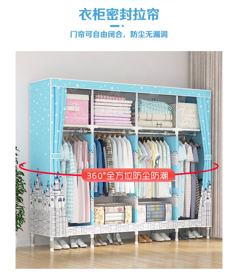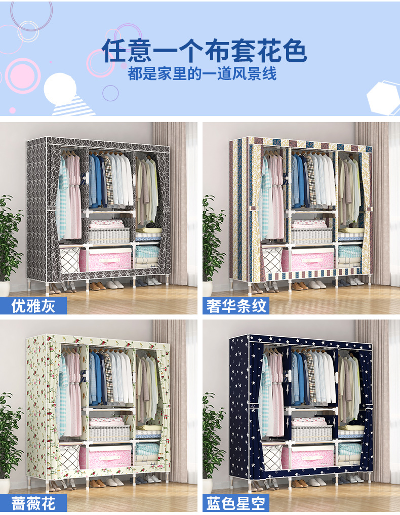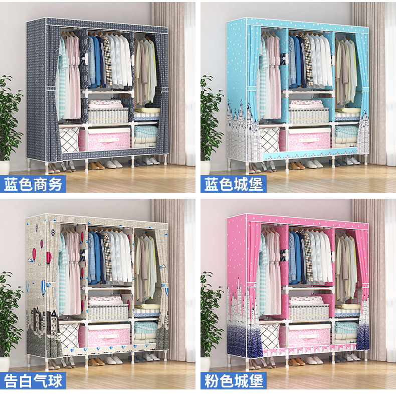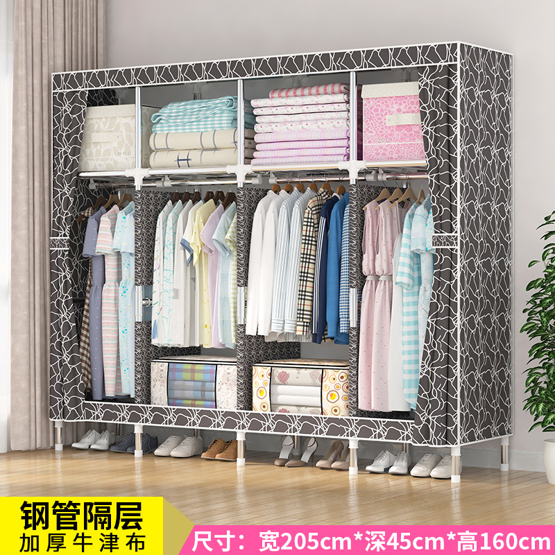 정리 간단한 옷장 홈 침실 원단 조립 천 옷장 임대 방 강력하고 튼튼한 단단한 나무 메쉬 두껍게스토어 가기