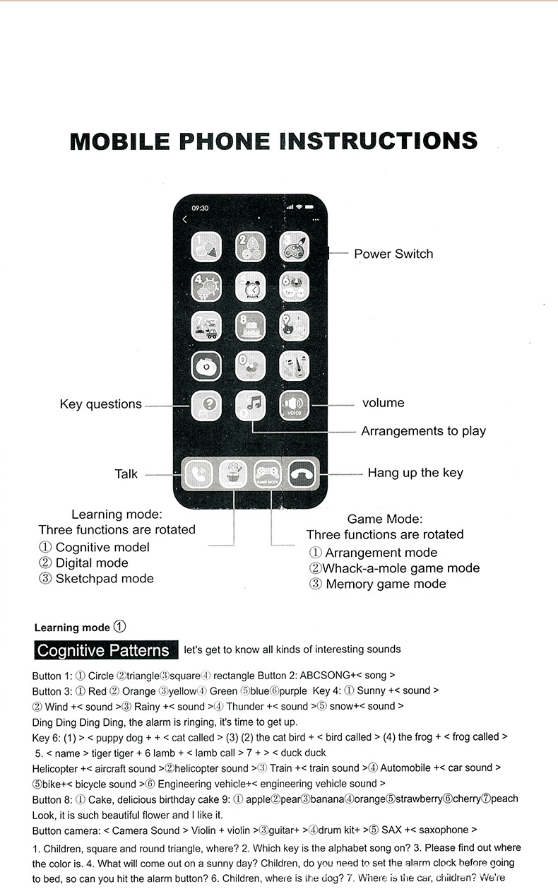 국경 간 퍼즐 조기 교육 휴대 전화 장난감 멀티 모드 음악 전화 터치 스크린 시뮬레이션 애플 휴대 전화 모델 어린이