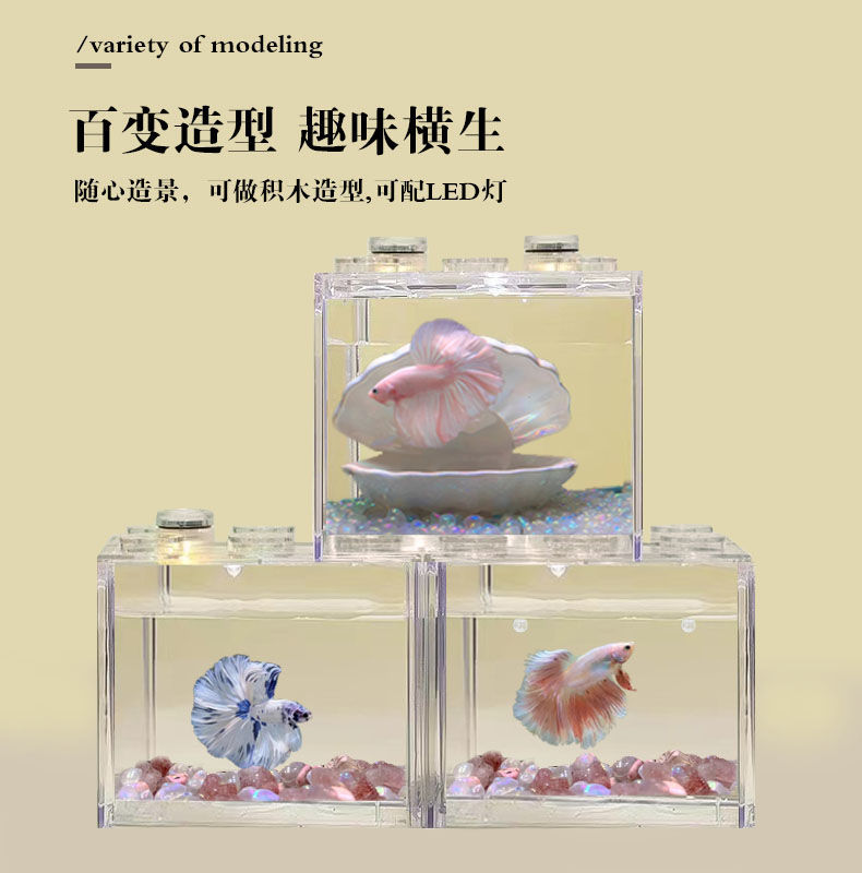 아크릴 인터넷 연예인 투명 빌딩 블록 Betta 탱크 작은 초백색 데스크탑 거실 미니 수족관 금붕어 탱크
