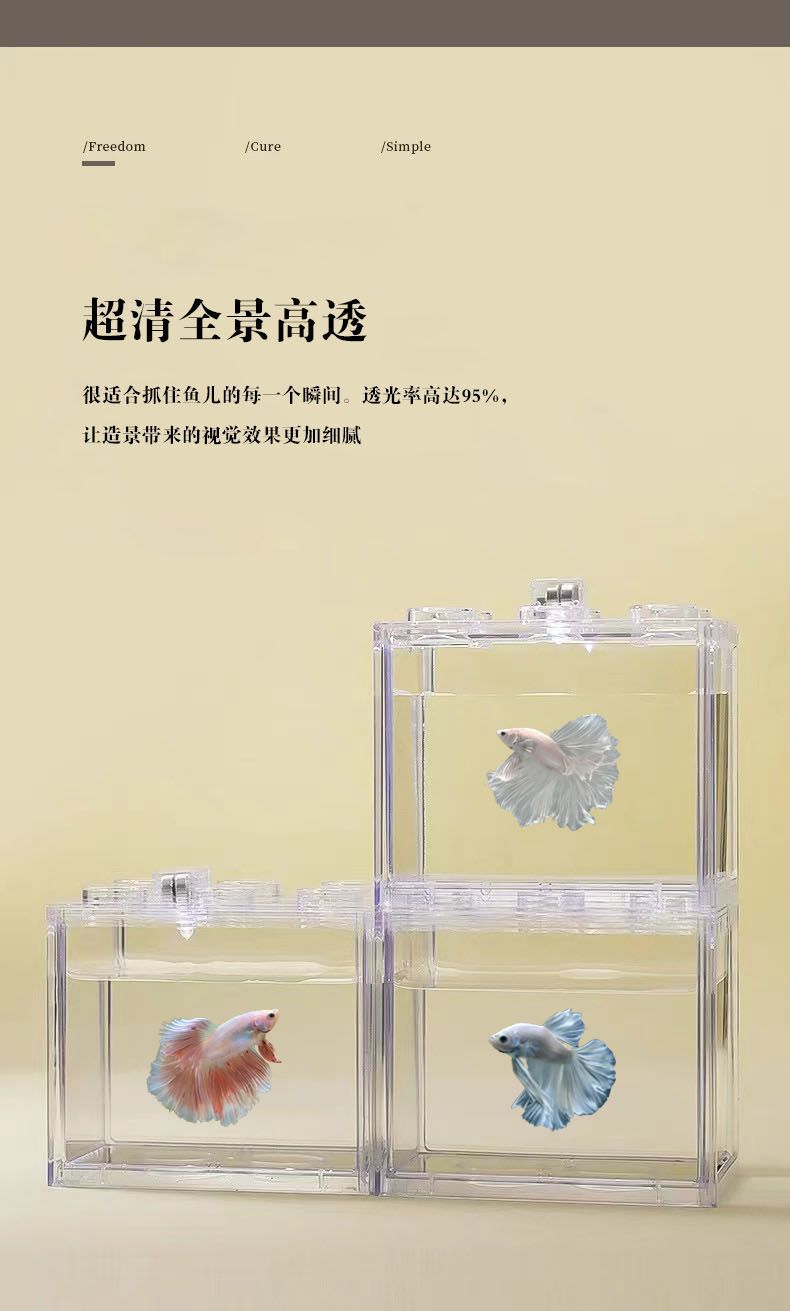 아크릴 인터넷 연예인 투명 빌딩 블록 Betta 탱크 작은 초백색 데스크탑 거실 미니 수족관 금붕어 탱크스토어 가기