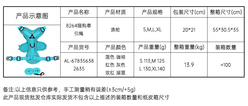 고양이 목줄 통기성 메쉬 소재 강아지 하네스 외출용 소형견 탈출 방지 고양이 산책줄 애완견 목줄