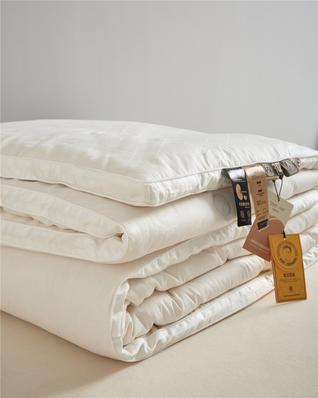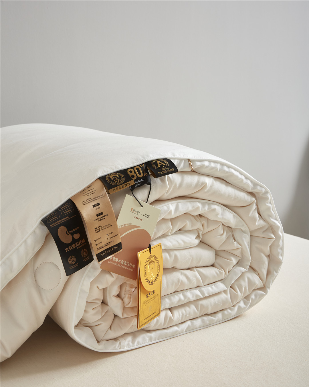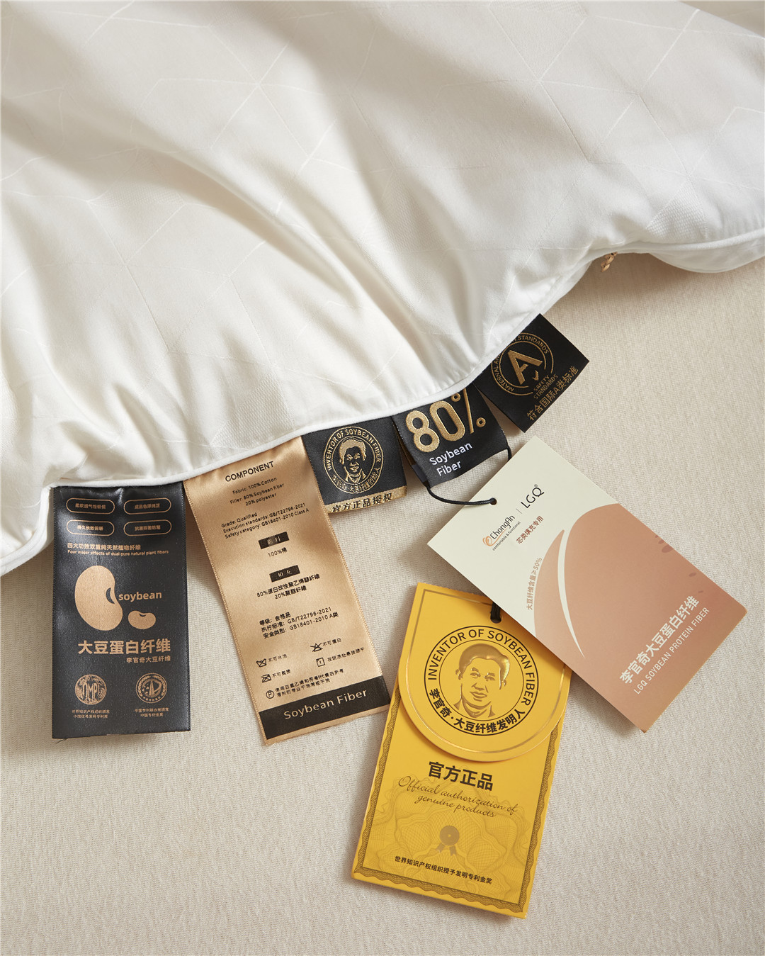 手感完全媲美蚕丝被,我们用的都是大豆纤维的发明者李官齐大豆纤维,经过多道工序科研,再生大豆蛋白纤维黄金科学配比,我们超越了之前20%大豆黄金配比含量,成功升级为80%大豆含量,手感更好,不会因为大豆含量增多而让舒适感变差!
