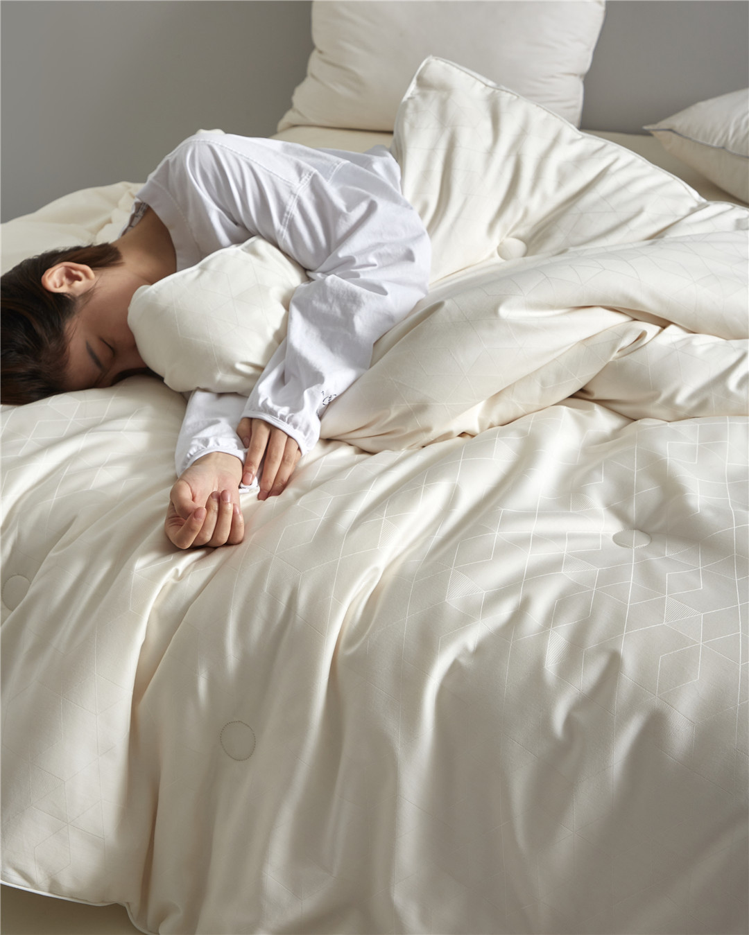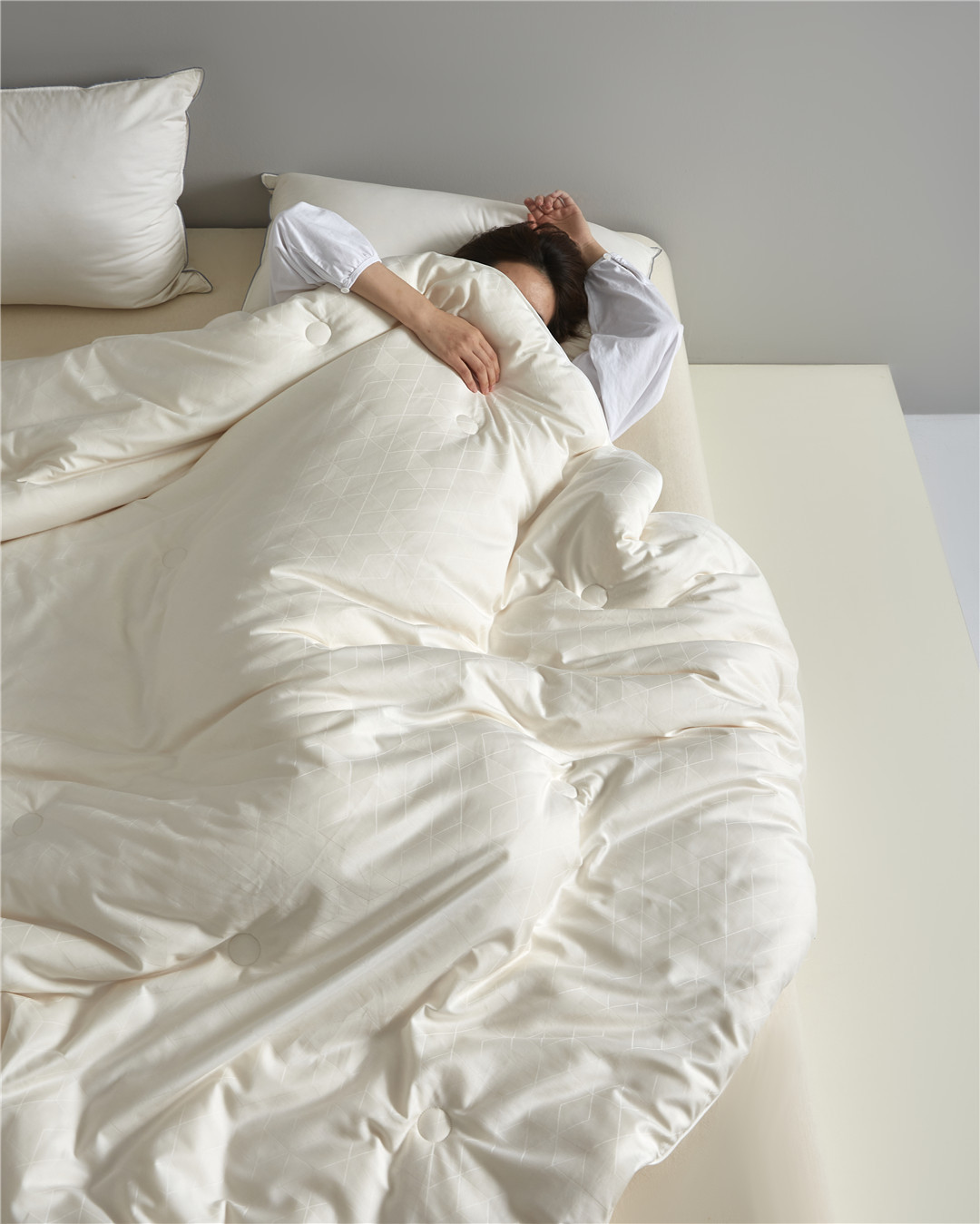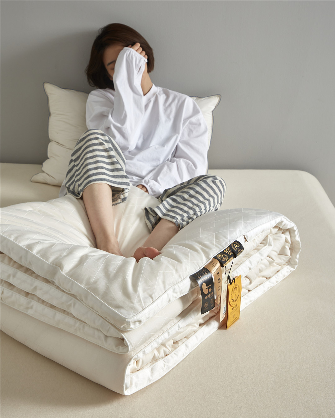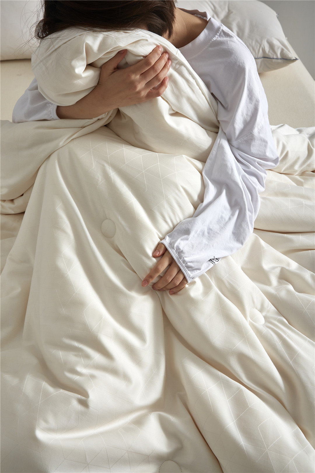 手感完全媲美蚕丝被,我们用的都是大豆纤维的发明者李官齐大豆纤维,经过多道工序科研,再生大豆蛋白纤维黄金科学配比,我们超越了之前20%大豆黄金配比含量,成功升级为80%大豆含量,手感更好,不会因为大豆含量增多而让舒适感变差!