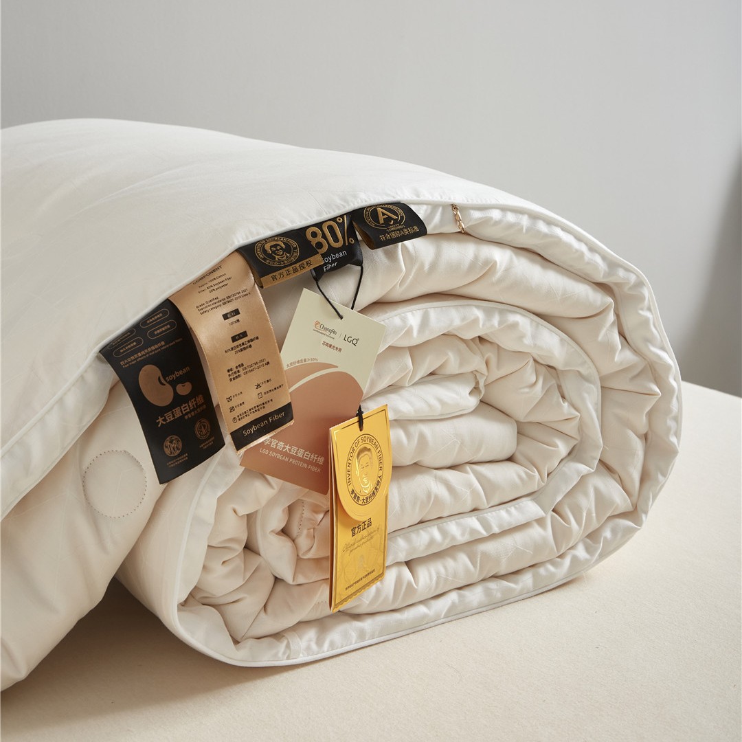大豆纤维富含十八种氨基酸,含量越高越好,睡觉的时候就在做美容,调节身体各项机能,对皮肤很好的哦!质朴温润,爽滑如丝,具有羊绒般的软糯手感,蚕丝般的柔美光泽,每条被子都非常的软糯贴身!