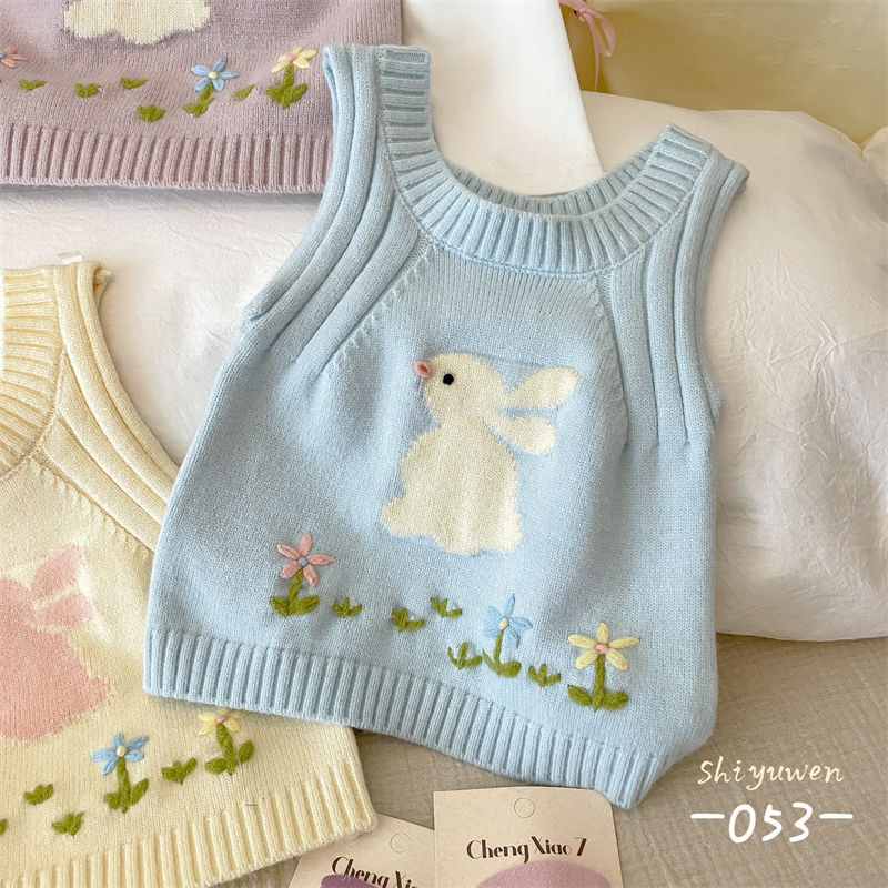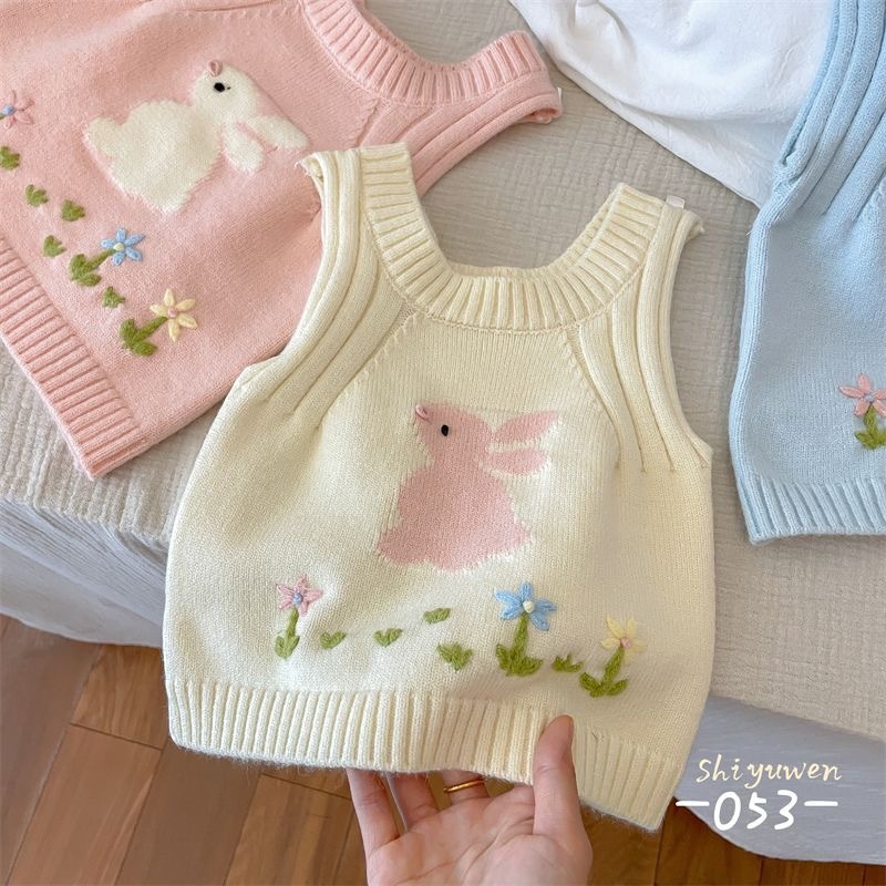 여자 달콤한 수 놓은 꽃 니트 조끼 봄과 가을 새로운 스타일 어린이 만화 스웨터 조끼 아동 의류스토어 가기