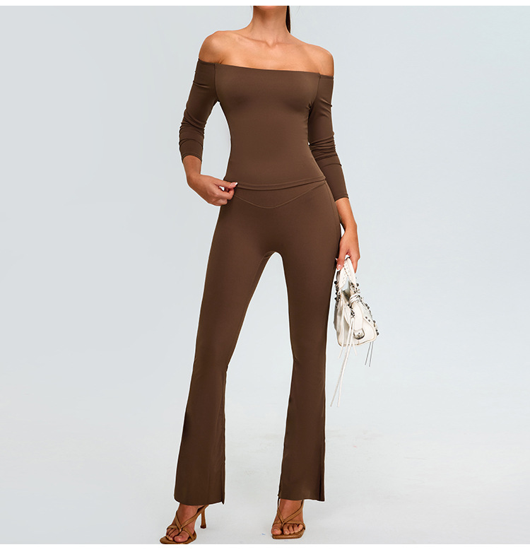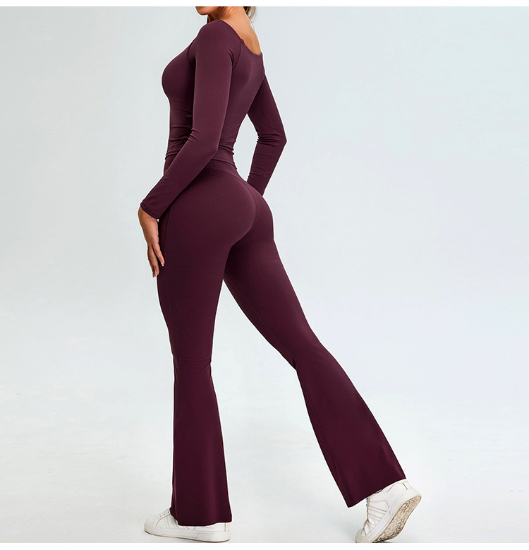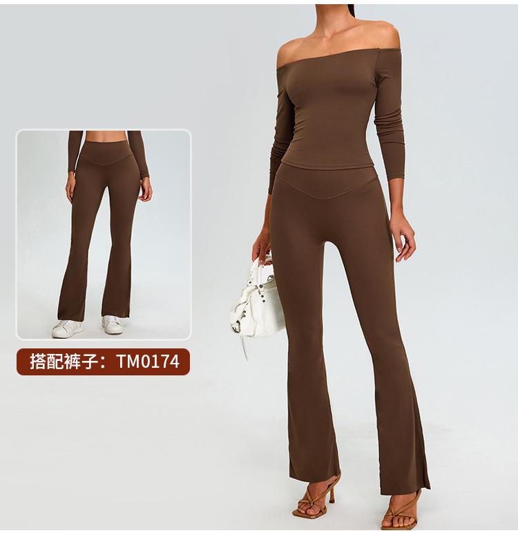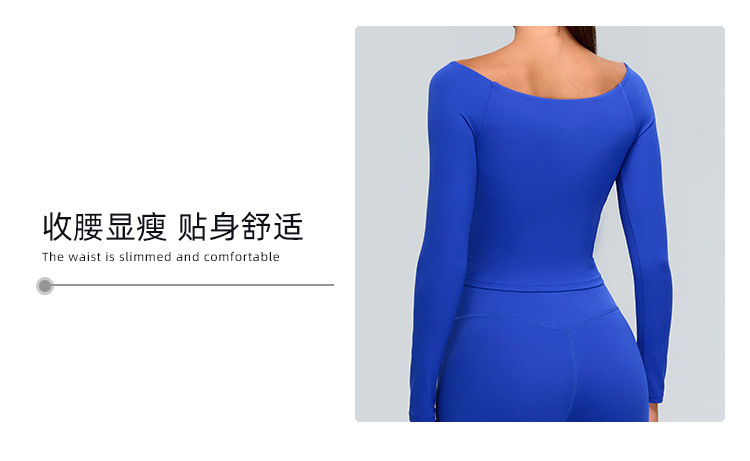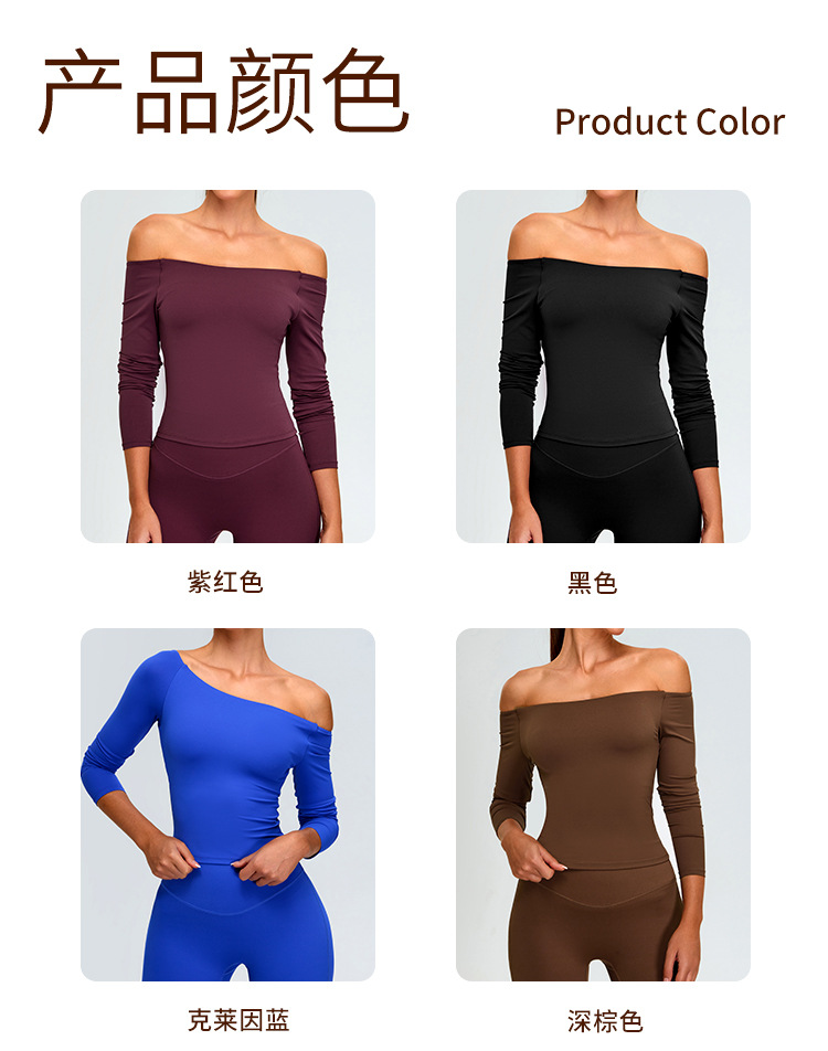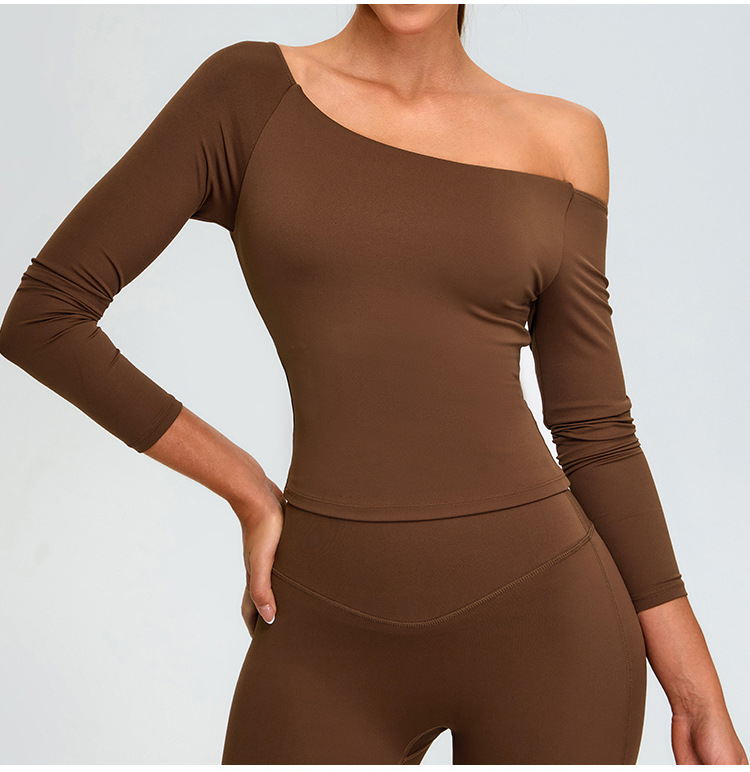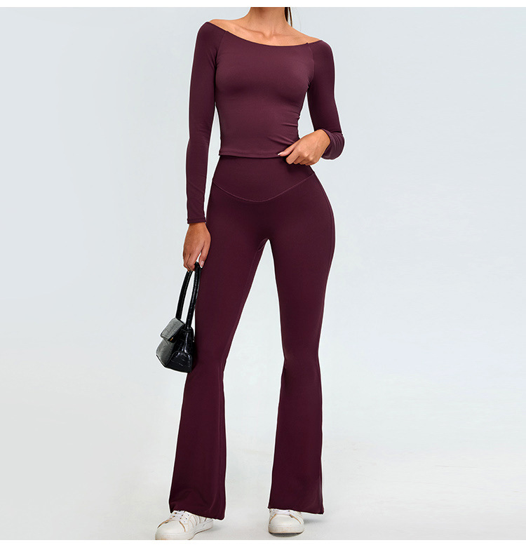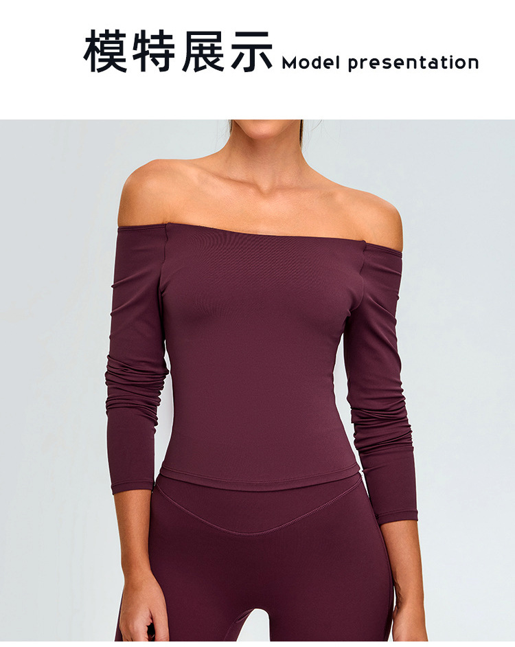 유럽과 미국의 새로운 스타일 오프 숄더 긴팔 요가 세트 여성용 스파이스 걸스 스포츠 티셔츠 탑 러닝 타이트한 피트니스 세트