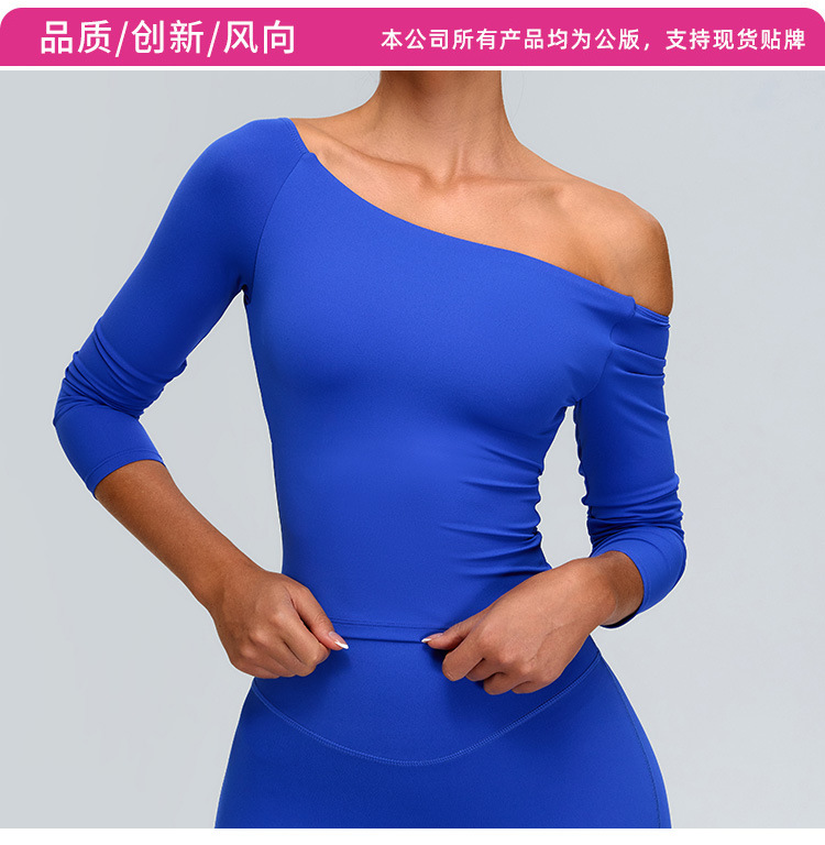 유럽과 미국의 새로운 스타일 오프 숄더 긴팔 요가 세트 여성용 스파이스 걸스 스포츠 티셔츠 탑 러닝 타이트한 피트니스 세트스토어 가기