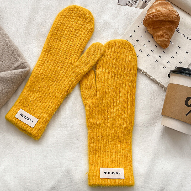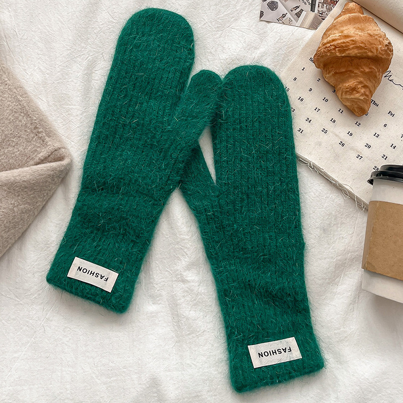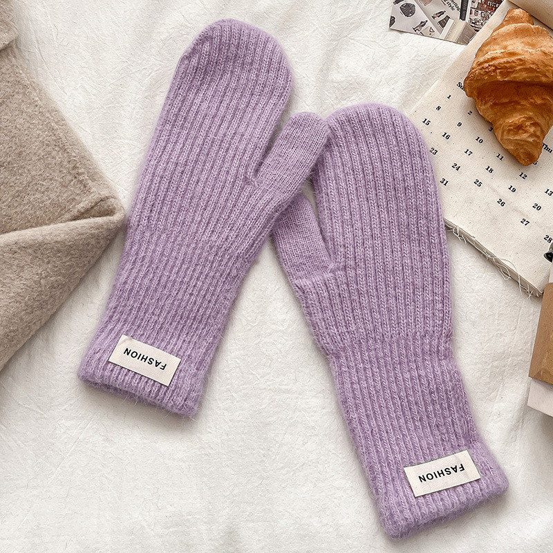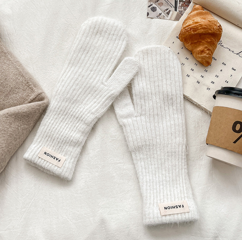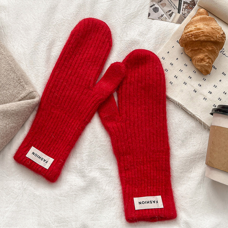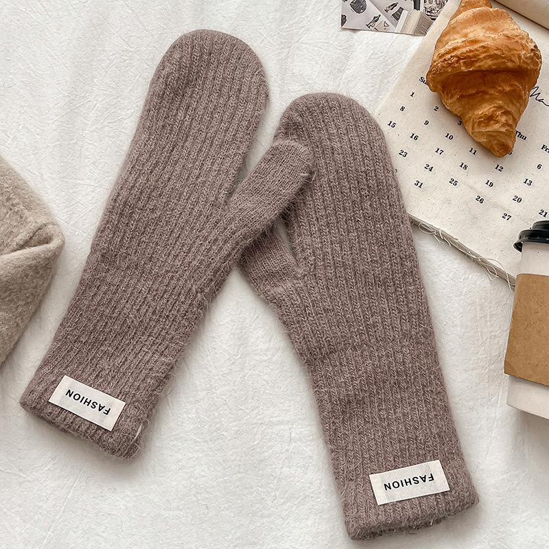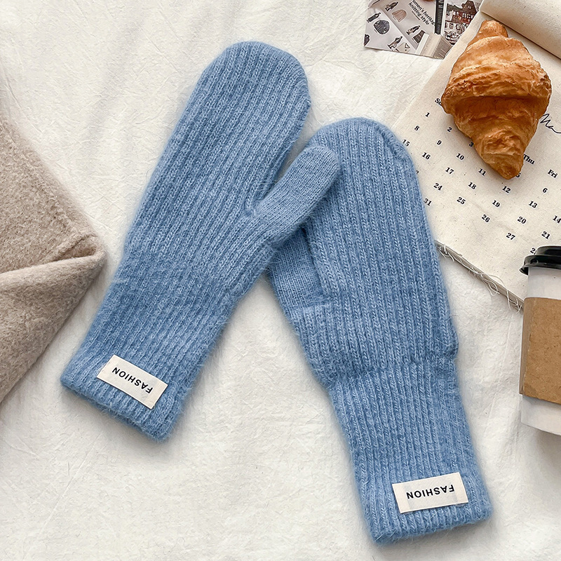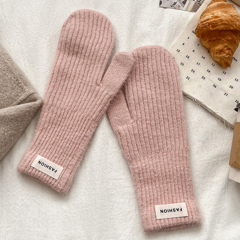 여성을위한 새로운 겨울 토끼 모피 장갑 니트 따뜻한 단색 장갑 겨울 사이클링 한국 스타일 모직 장갑 유행