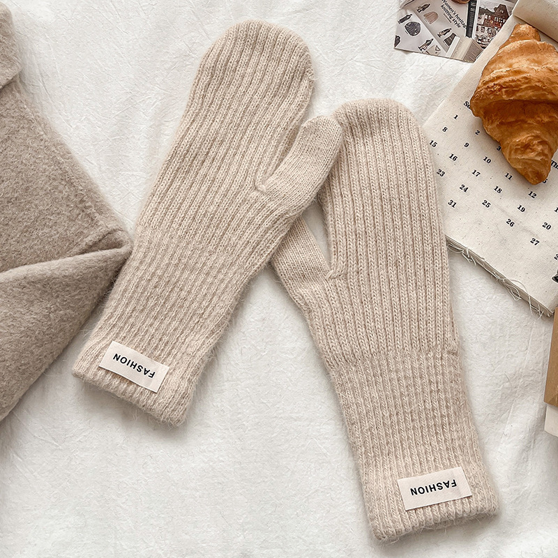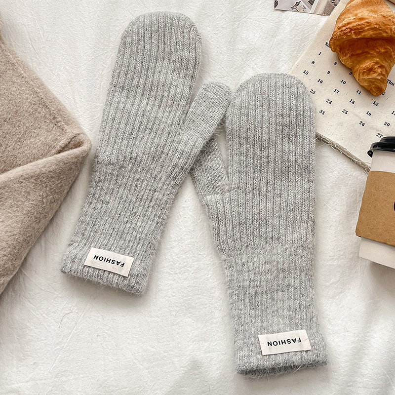 여성을위한 새로운 겨울 토끼 모피 장갑 니트 따뜻한 단색 장갑 겨울 사이클링 한국 스타일 모직 장갑 유행스토어 가기