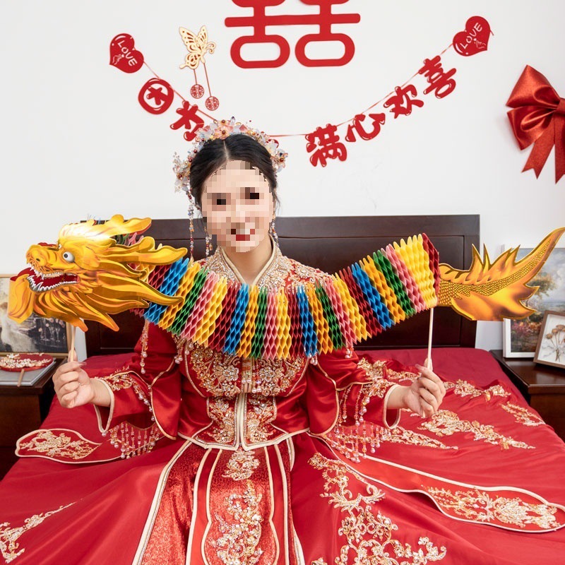 민속 아침 로브 종이 컷 드래곤 댄스 분위기 중국 스타일 준비 웨딩 소품 신부 촬영 작은 컬러 드래곤 웨딩 사진