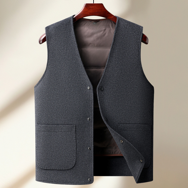 하이 엔드 양면 울 조끼 남자 중년 및 노인 다운 라이너 두꺼운 따뜻한 조끼 어깨 허리 코트 남자 조끼스토어 가기