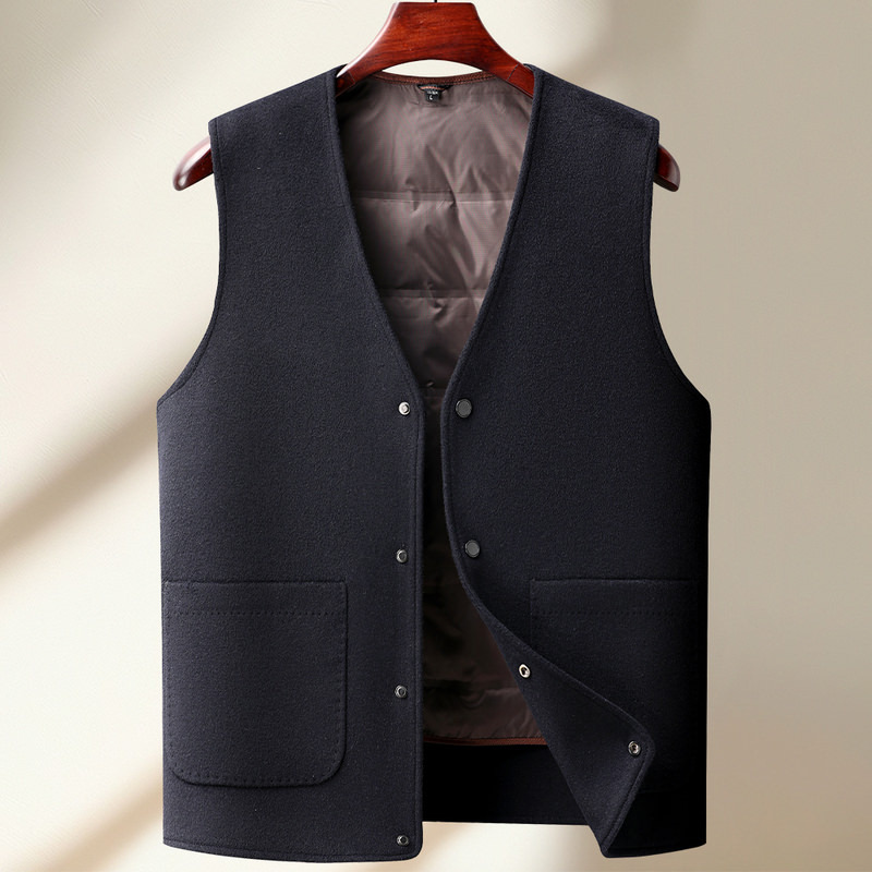 하이 엔드 양면 울 조끼 남자 중년 및 노인 다운 라이너 두꺼운 따뜻한 조끼 어깨 허리 코트 남자 조끼