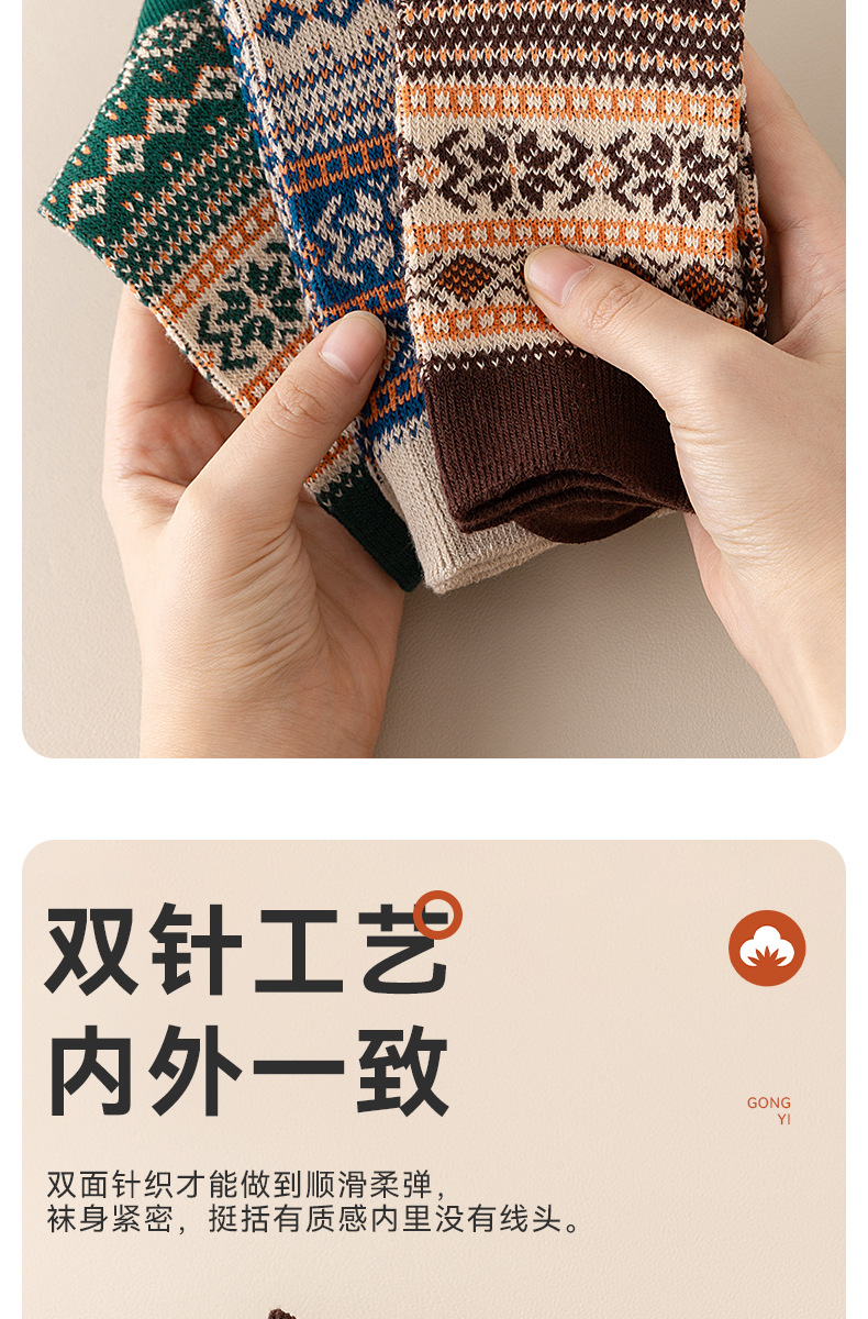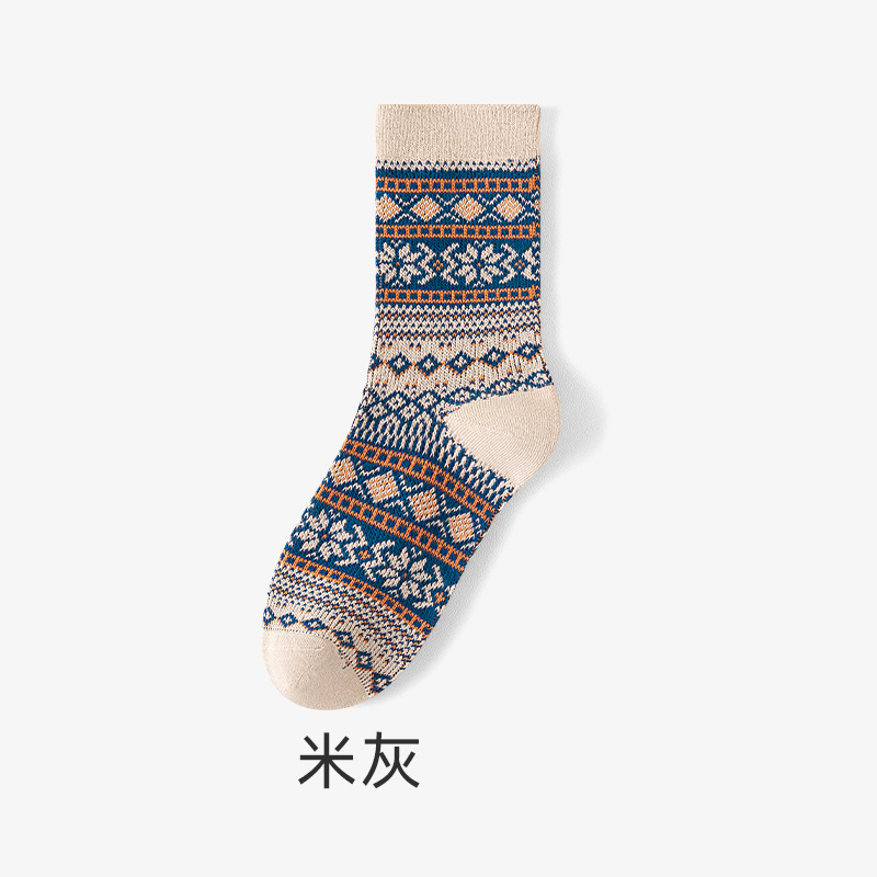 가을과 겨울 패션 남성 중간 길이 양말 민족 스타일 빈티지 더블 바늘 코튼 양말 시계 필링 미국식 Ami Khaji 스타킹스토어 가기