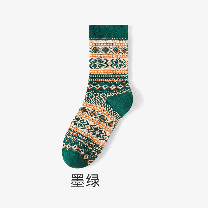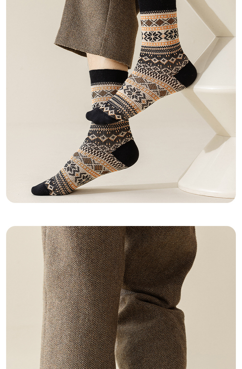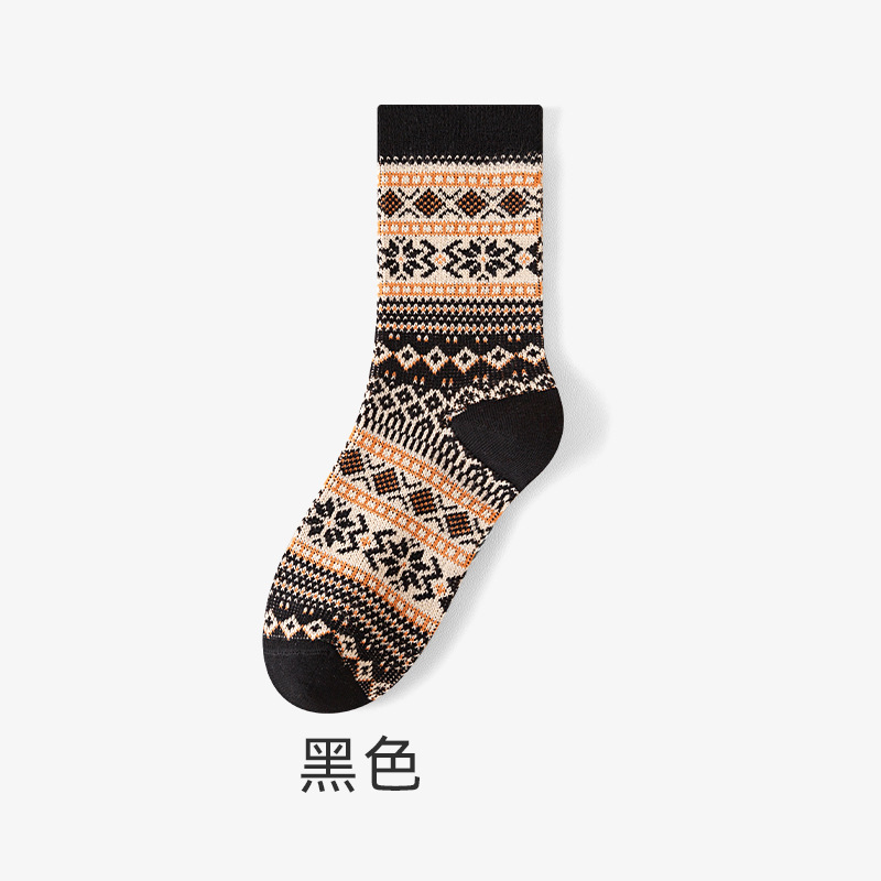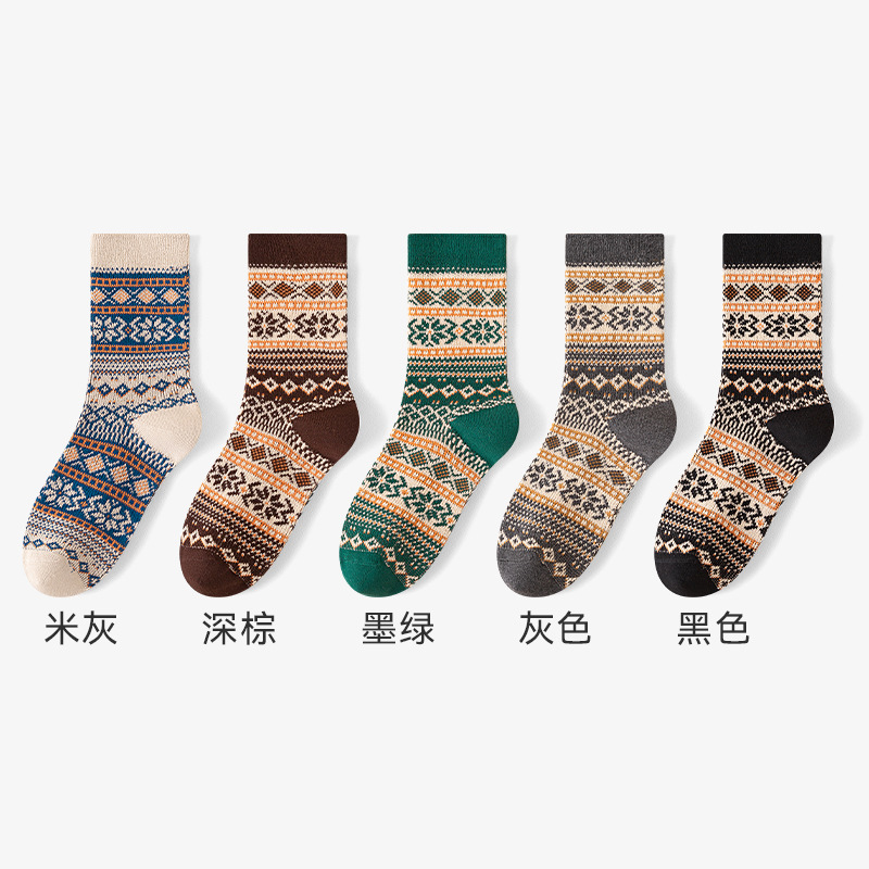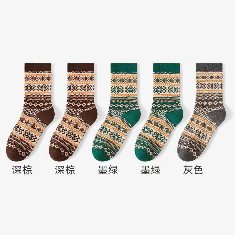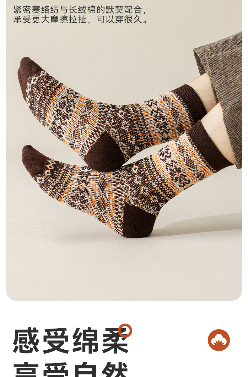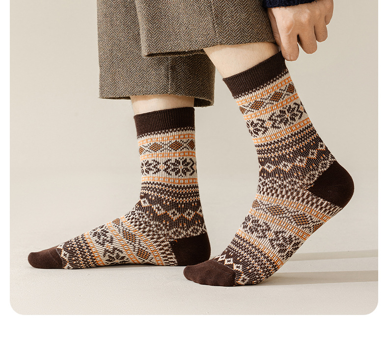 가을과 겨울 패션 남성 중간 길이 양말 민족 스타일 빈티지 더블 바늘 코튼 양말 시계 필링 미국식 Ami Khaji 스타킹