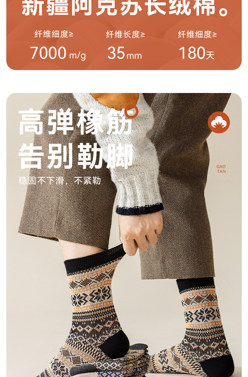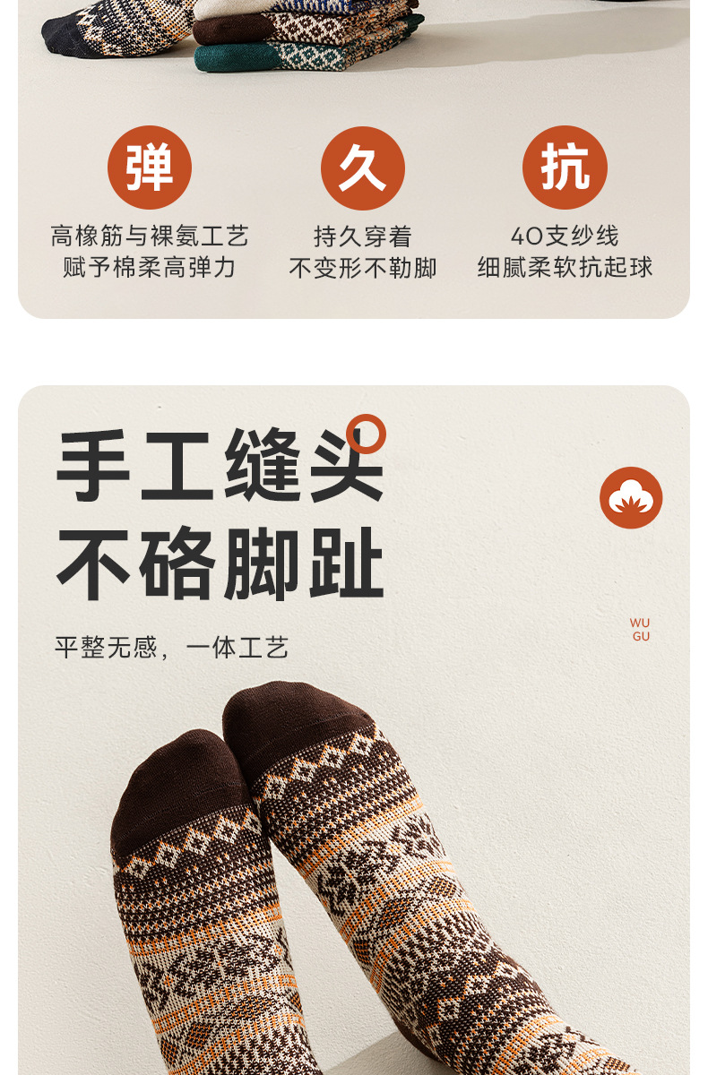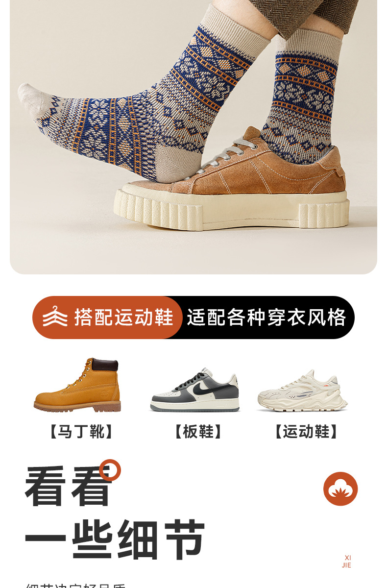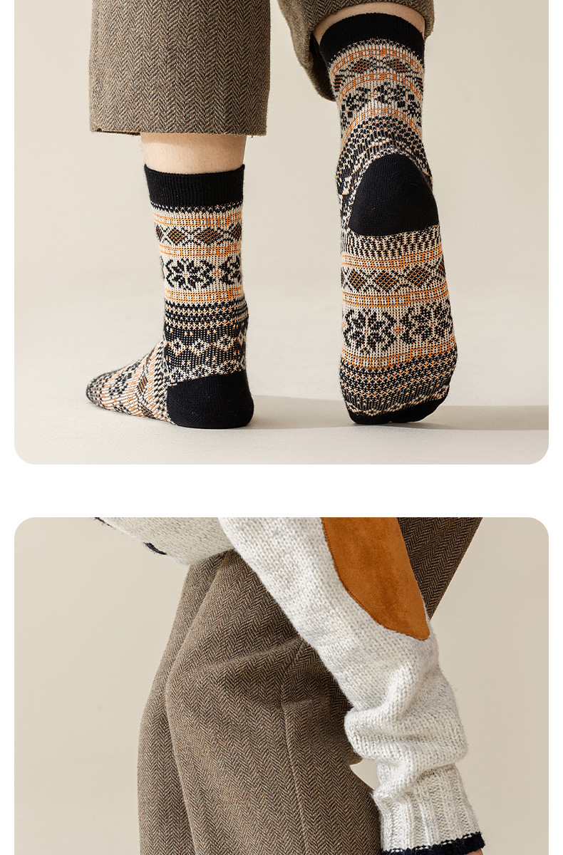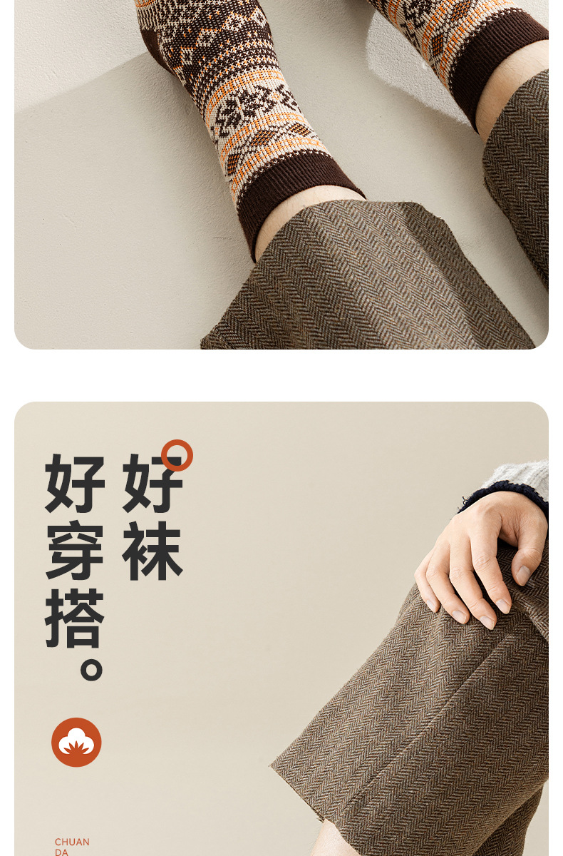가을과 겨울 패션 남성 중간 길이 양말 민족 스타일 빈티지 더블 바늘 코튼 양말 시계 필링 미국식 Ami Khaji 스타킹