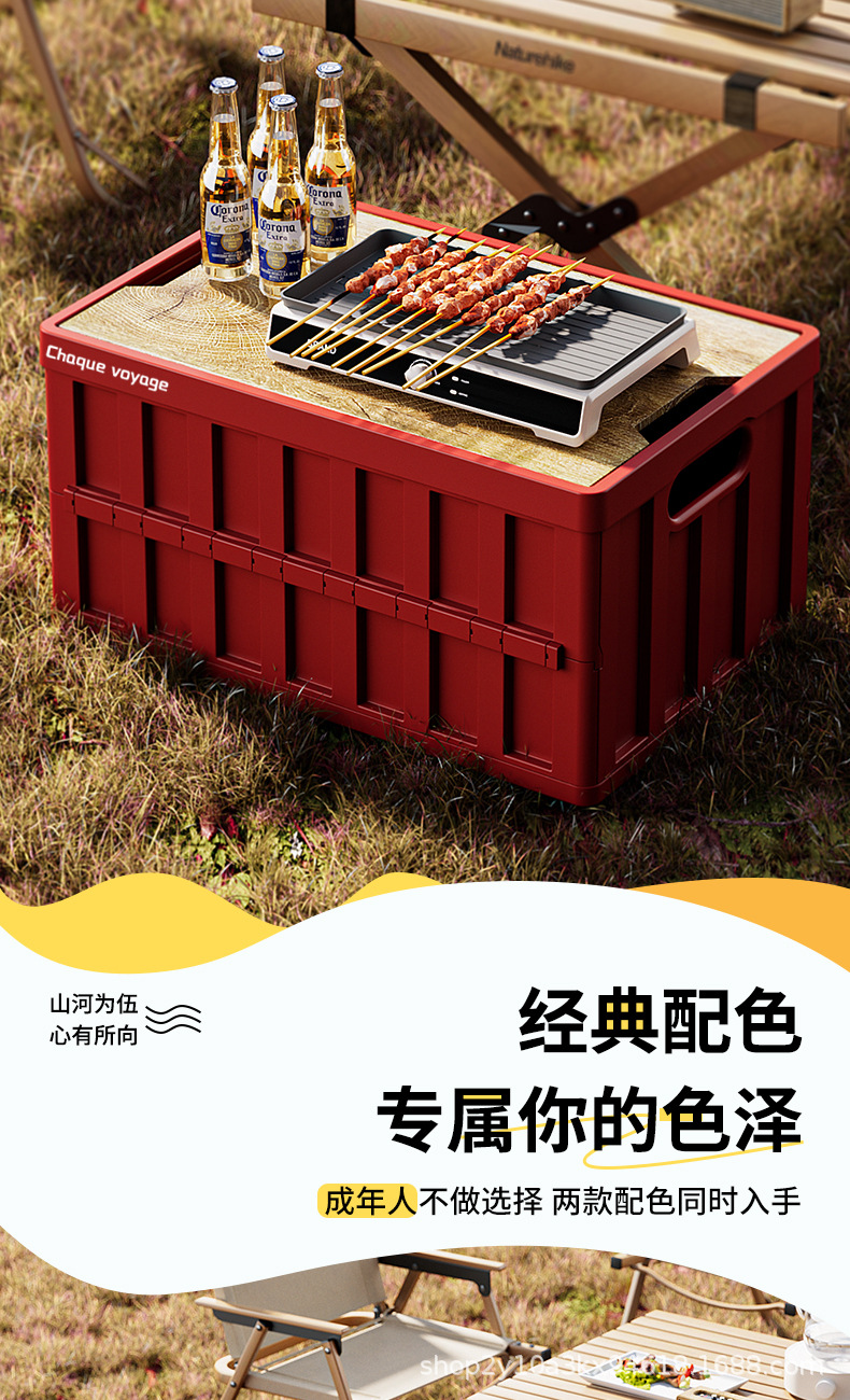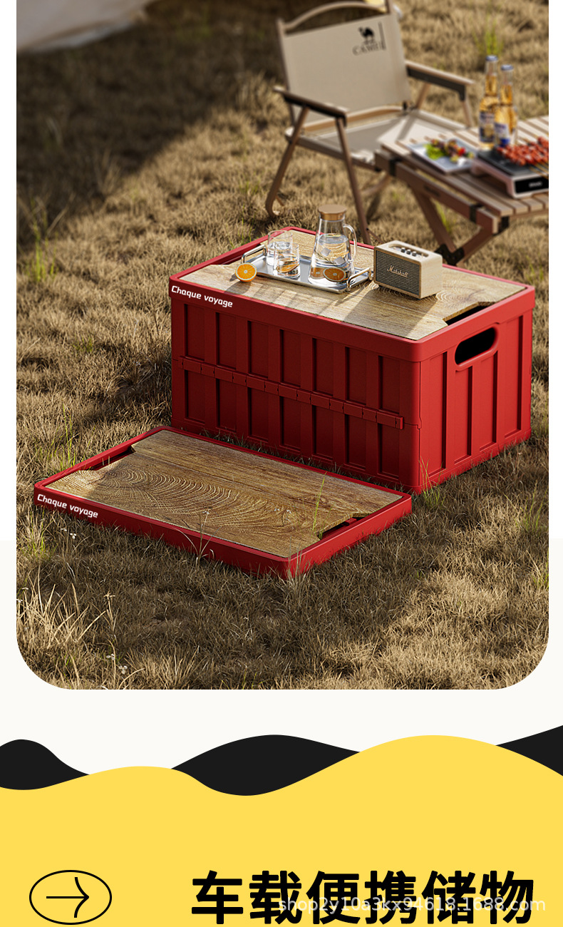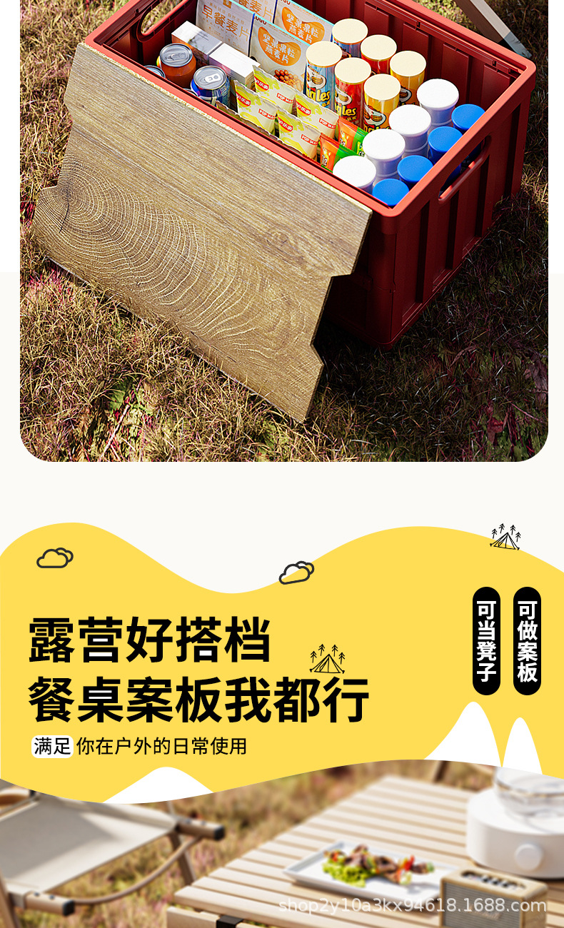 캠핑 수납함 측면 개폐식 나무 뚜껑 접이식 박스 차량용 트렁크 수납함 플라스틱 수납함 휴대용 접이식스토어 가기