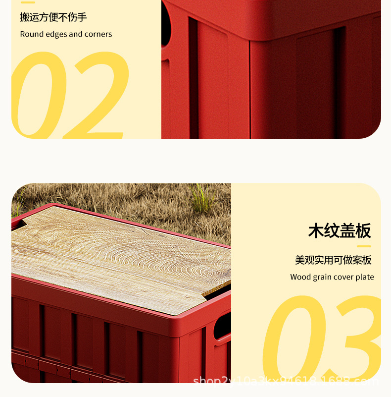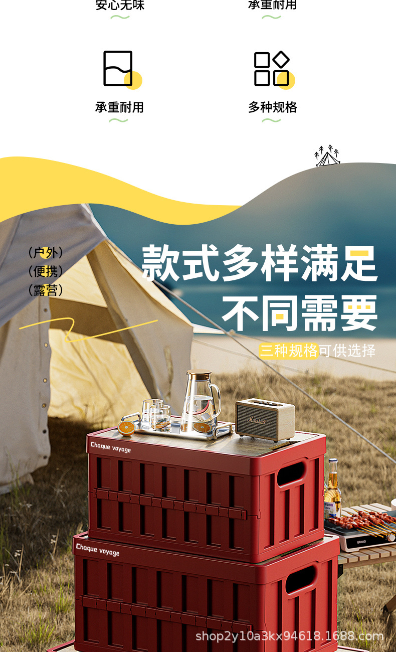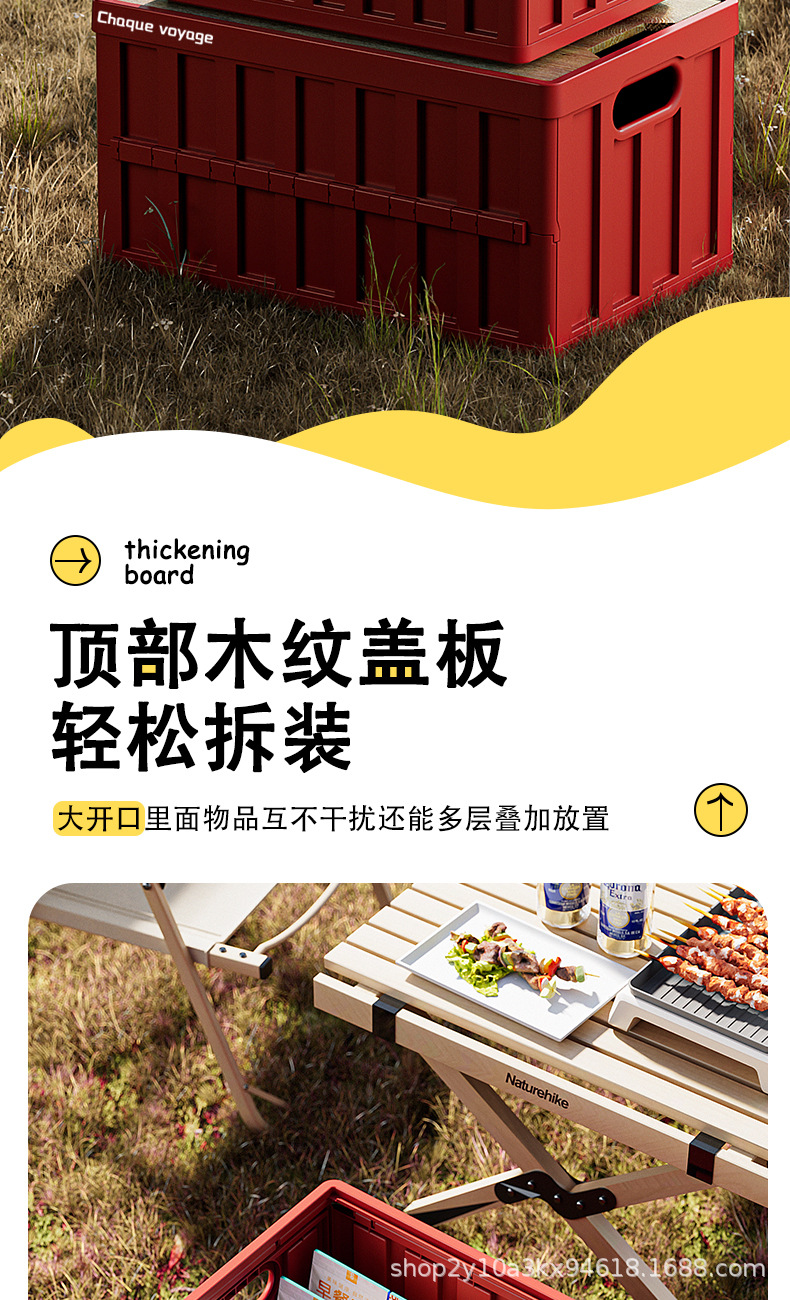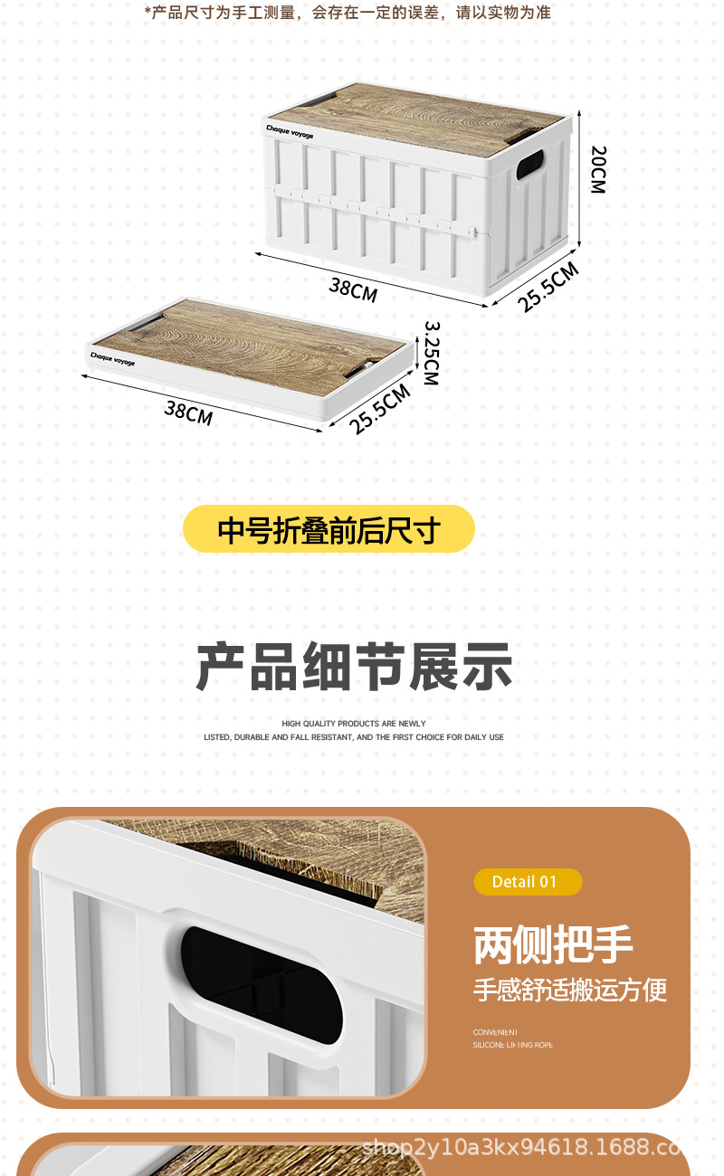 캠핑 수납함 측면 개폐식 나무 뚜껑 접이식 박스 차량용 트렁크 수납함 플라스틱 수납함 휴대용 접이식스토어 가기