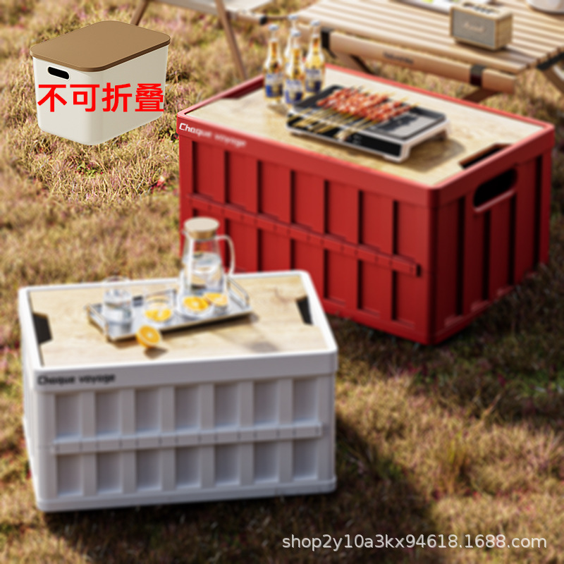 캠핑 수납함 측면 개폐식 나무 뚜껑 접이식 박스 차량용 트렁크 수납함 플라스틱 수납함 휴대용 접이식