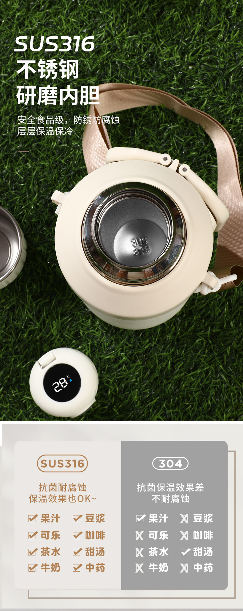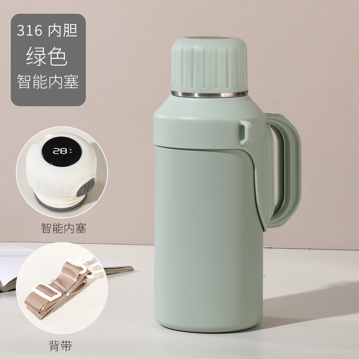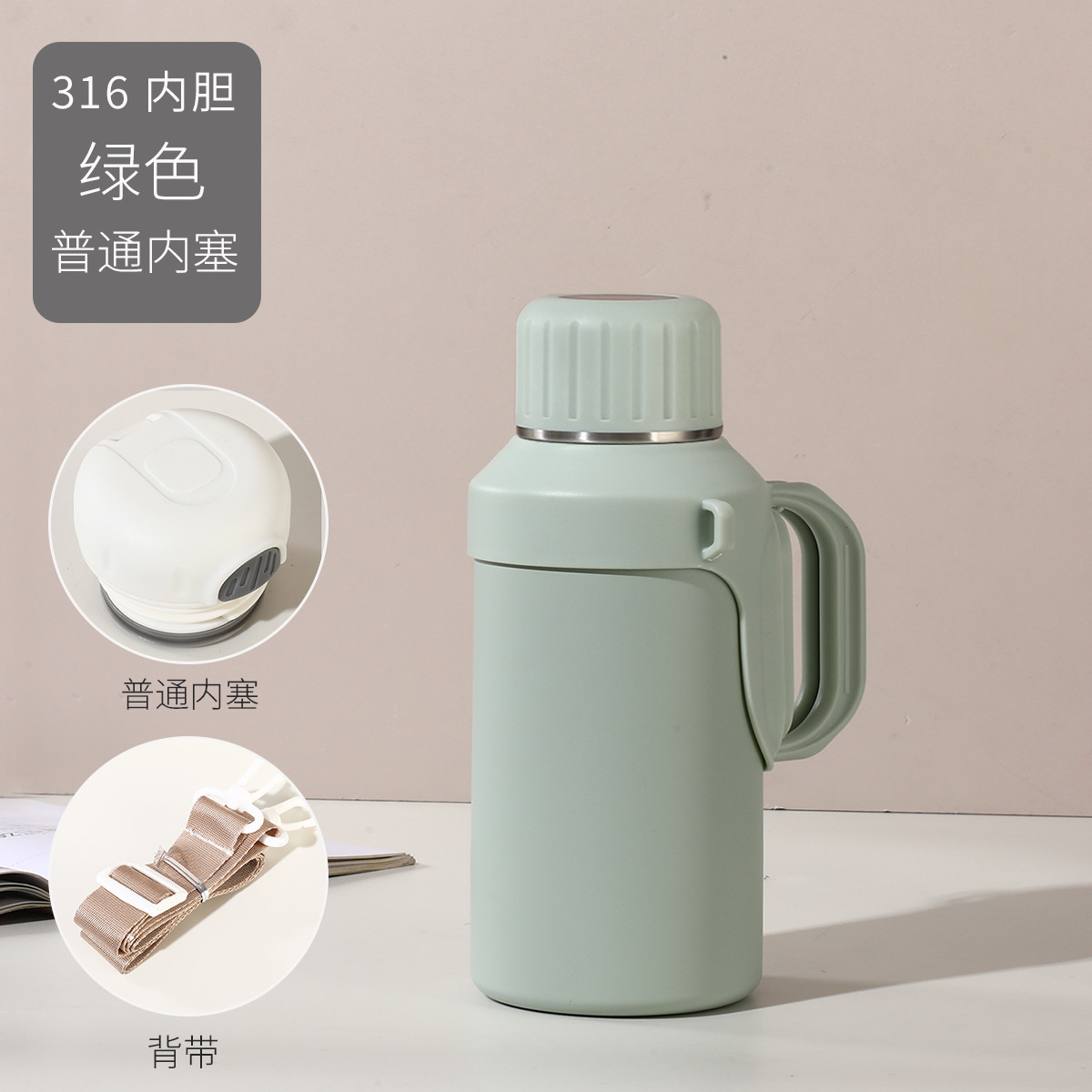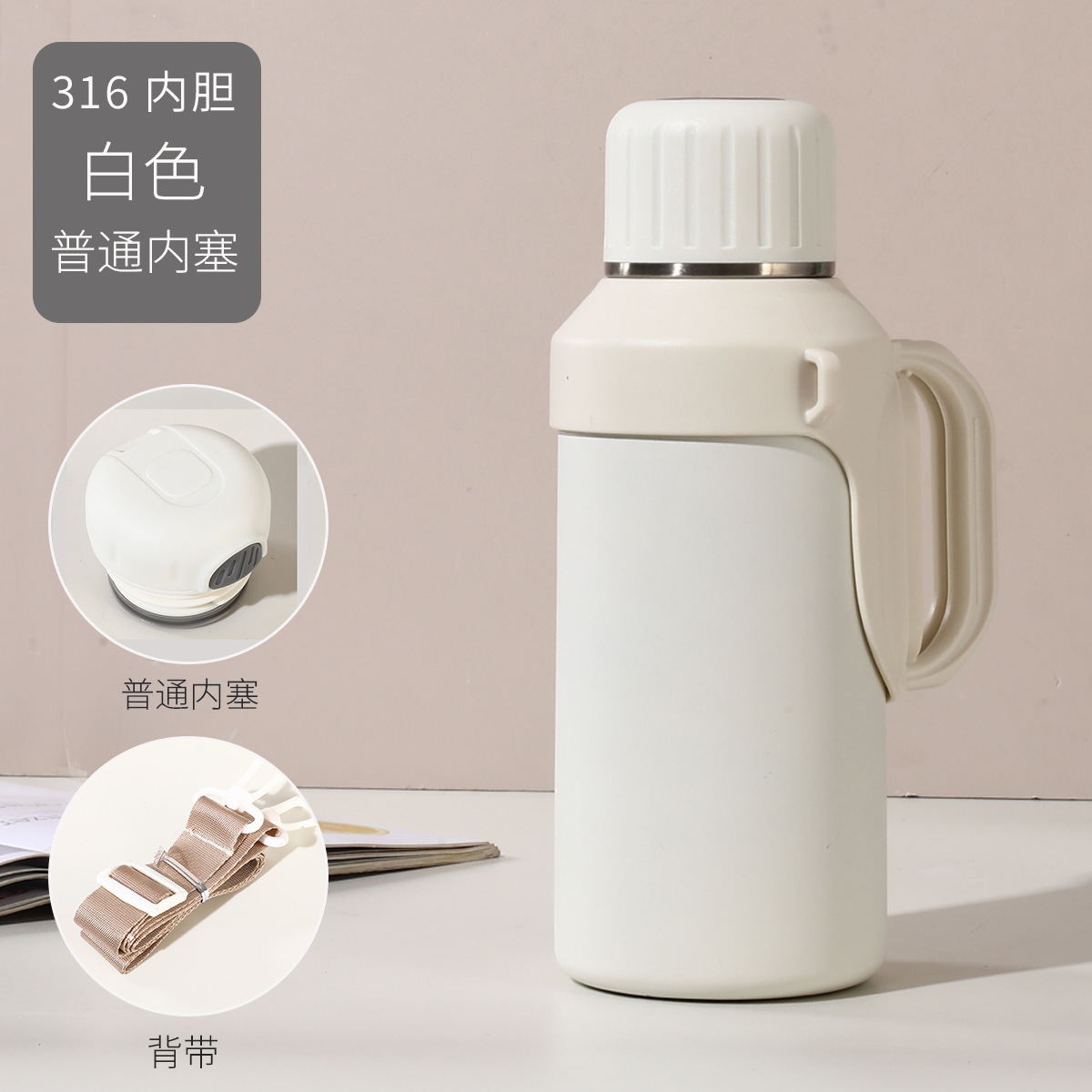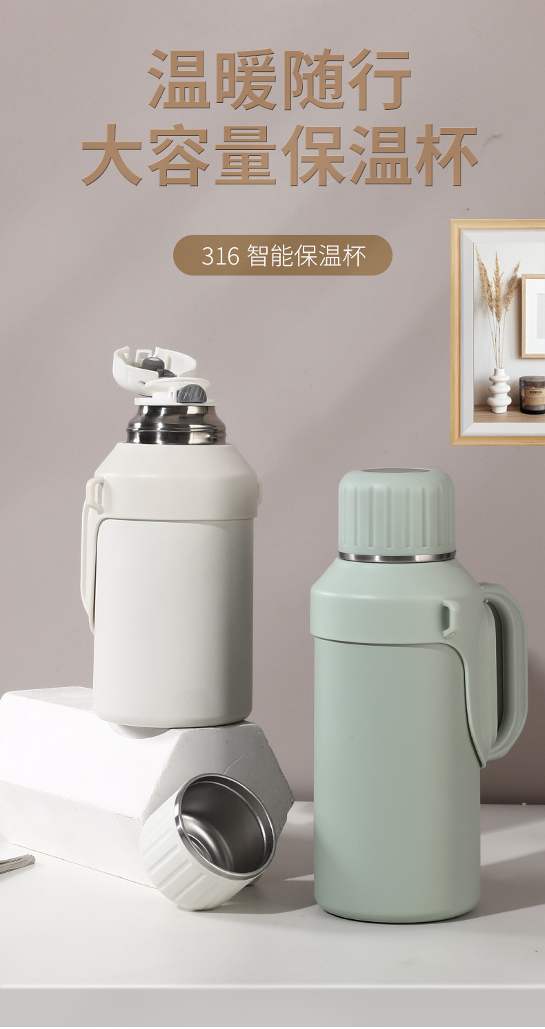 316 스테인레스 스틸 대용량 보온병 야외 여성 휴대용 보온병 접이식 여행 냄비 끈 손잡이 물 컵스토어 가기