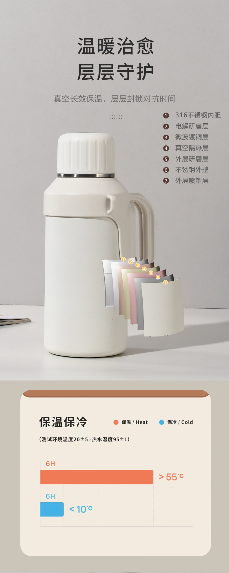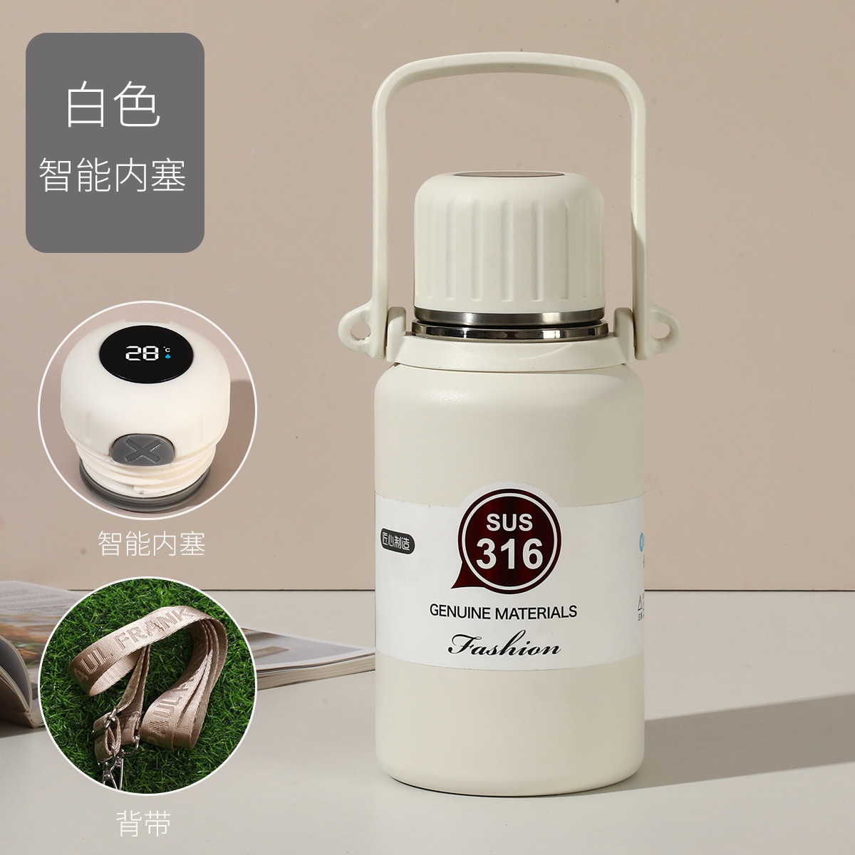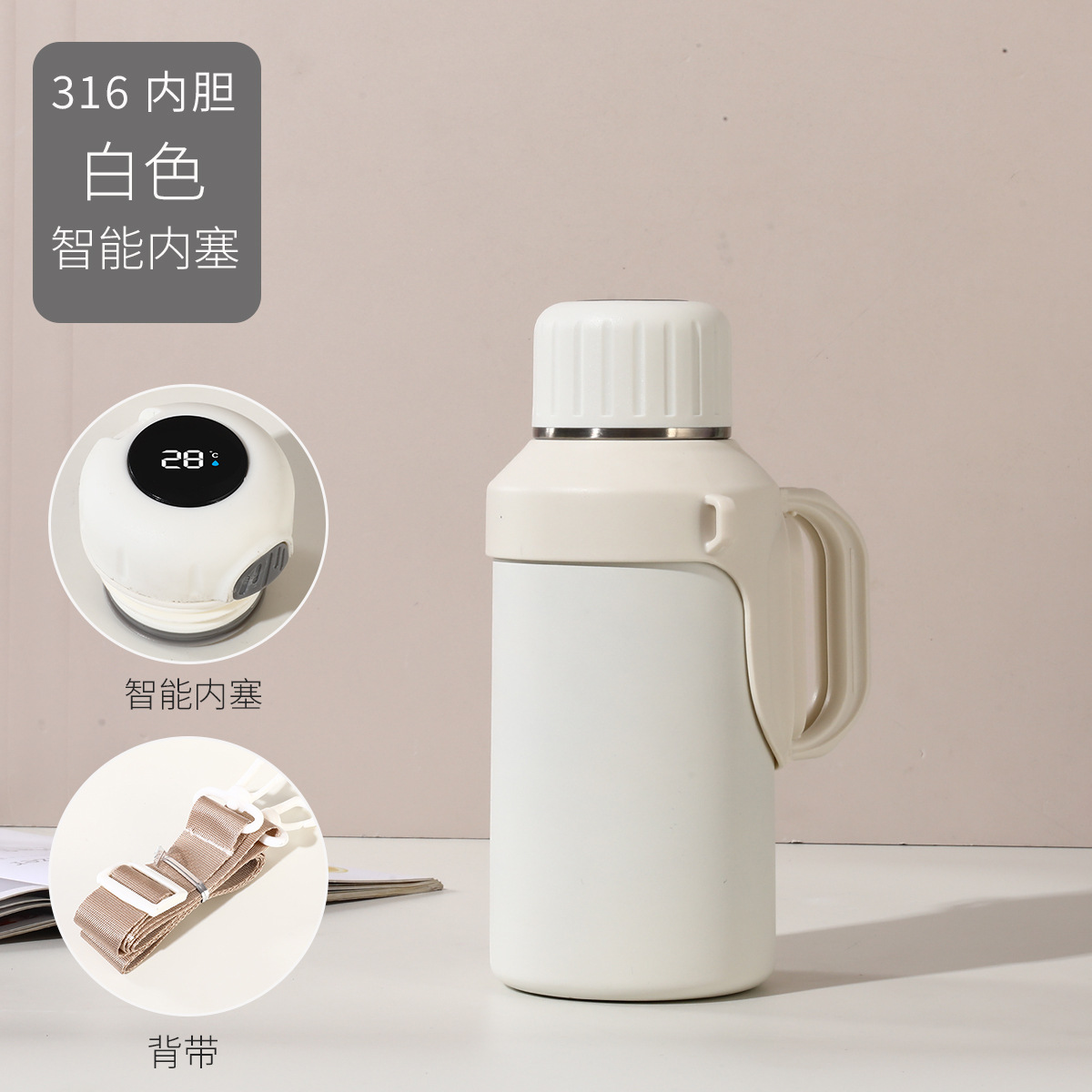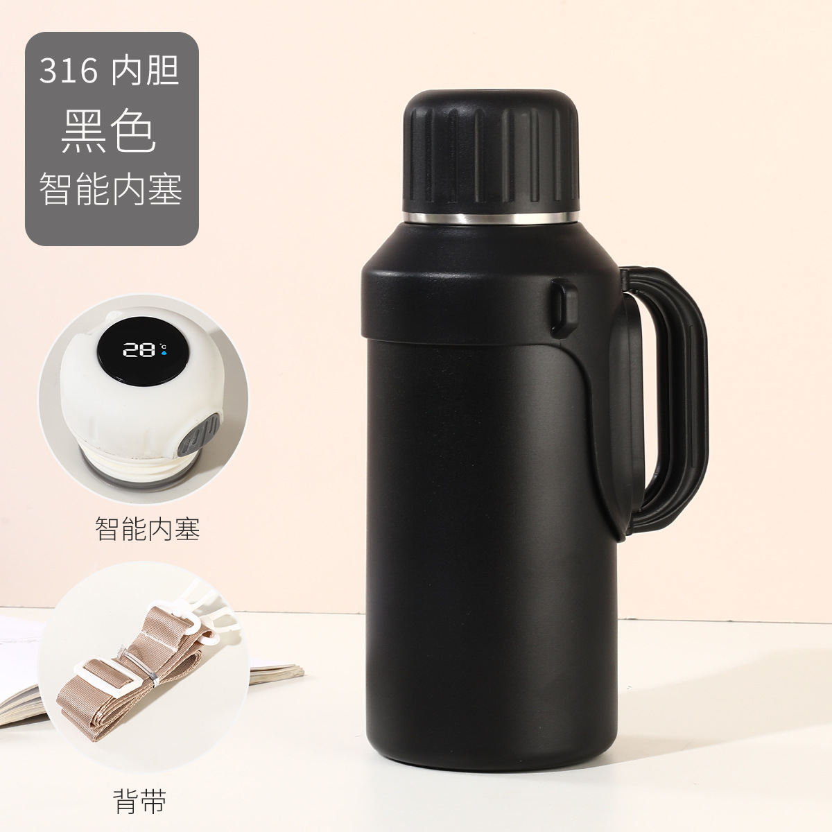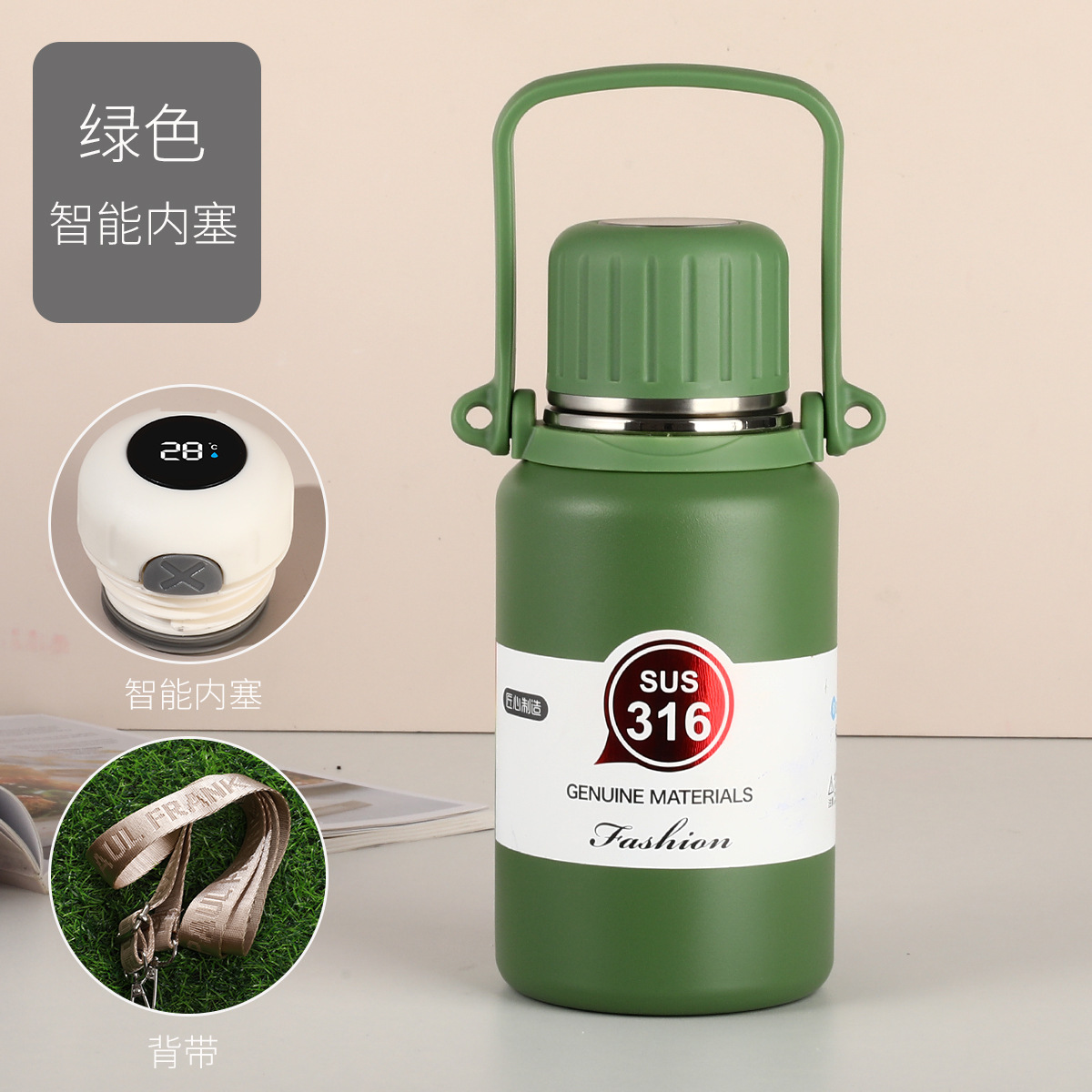 316 스테인레스 스틸 대용량 보온병 야외 여성 휴대용 보온병 접이식 여행 냄비 끈 손잡이 물 컵스토어 가기