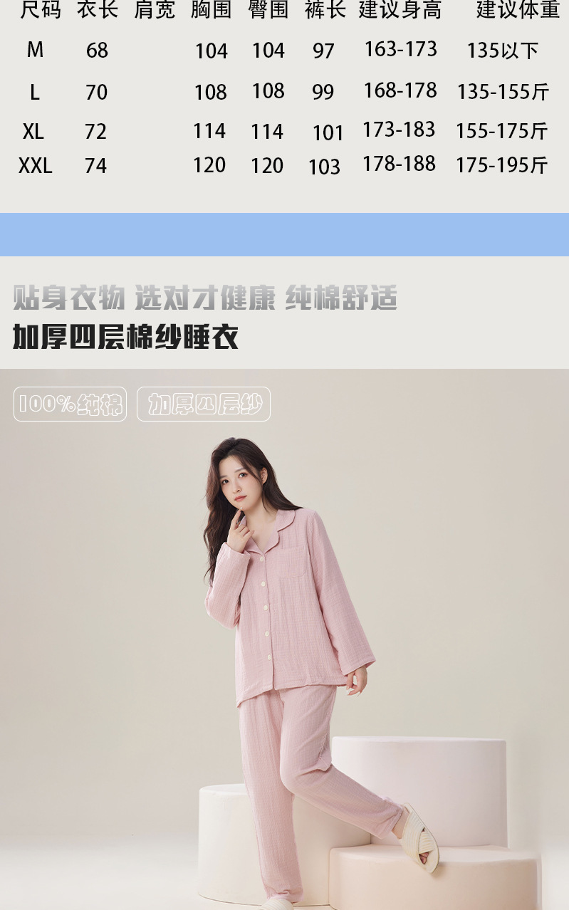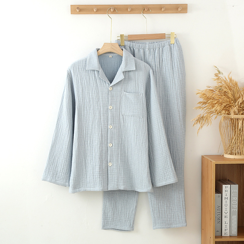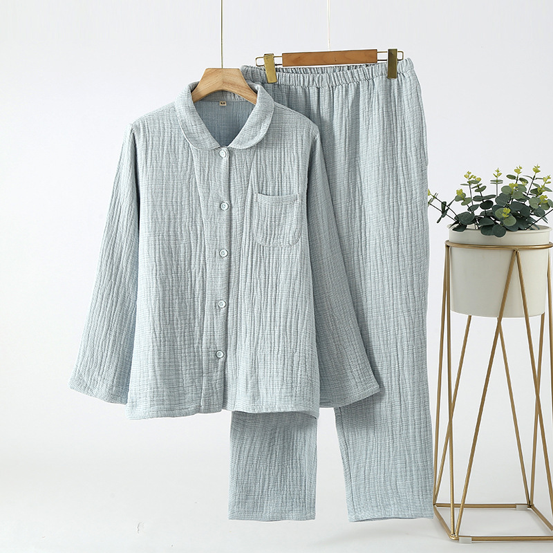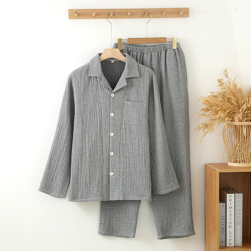 가을 겨울 맞춤형 4겹 두꺼운 순면 잠옷, 단색, 프린트 없는 스타일, 남성과 여성을 위한 심플한 홈웨어스토어 가기