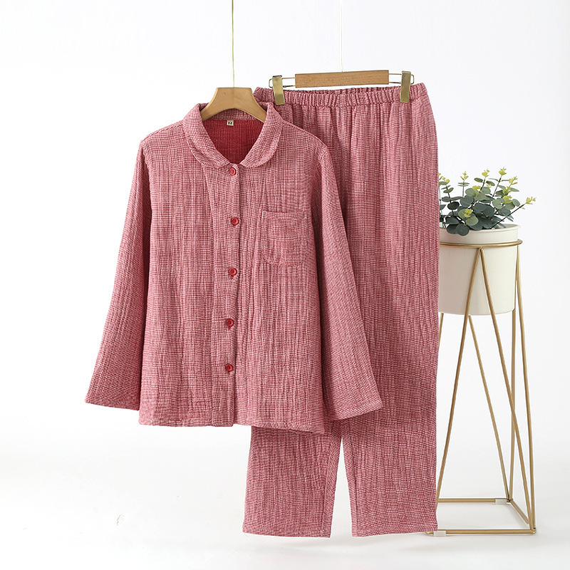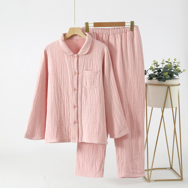 가을 겨울 맞춤형 4겹 두꺼운 순면 잠옷, 단색, 프린트 없는 스타일, 남성과 여성을 위한 심플한 홈웨어