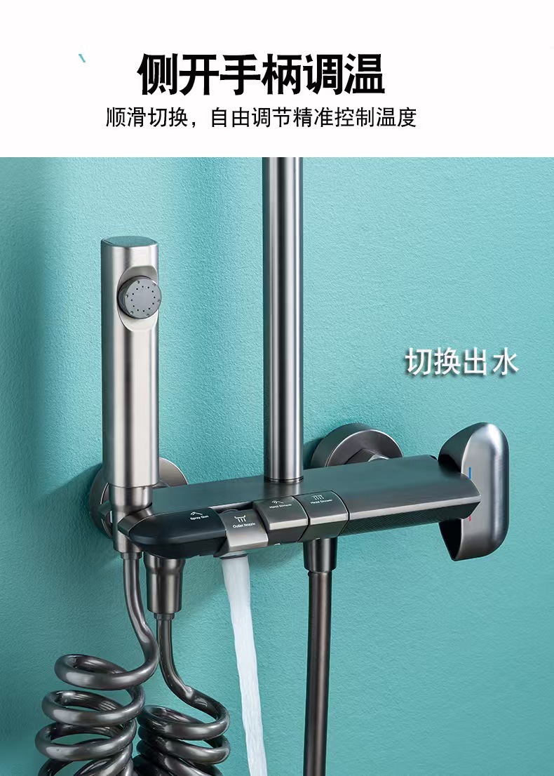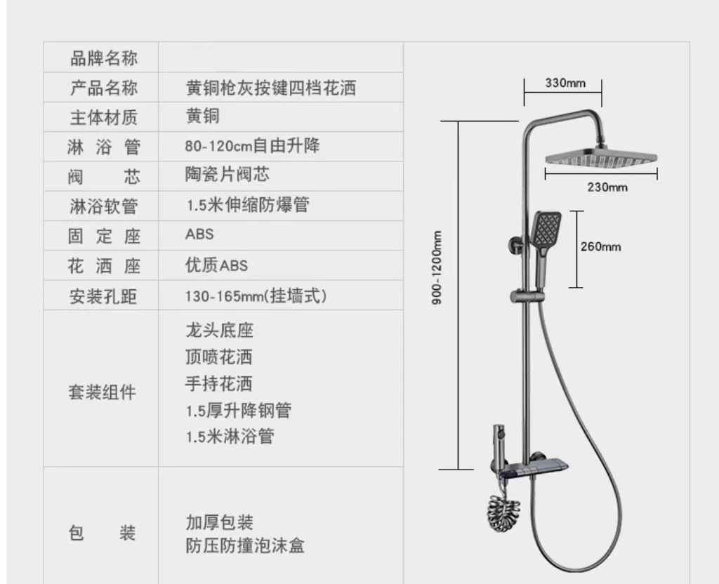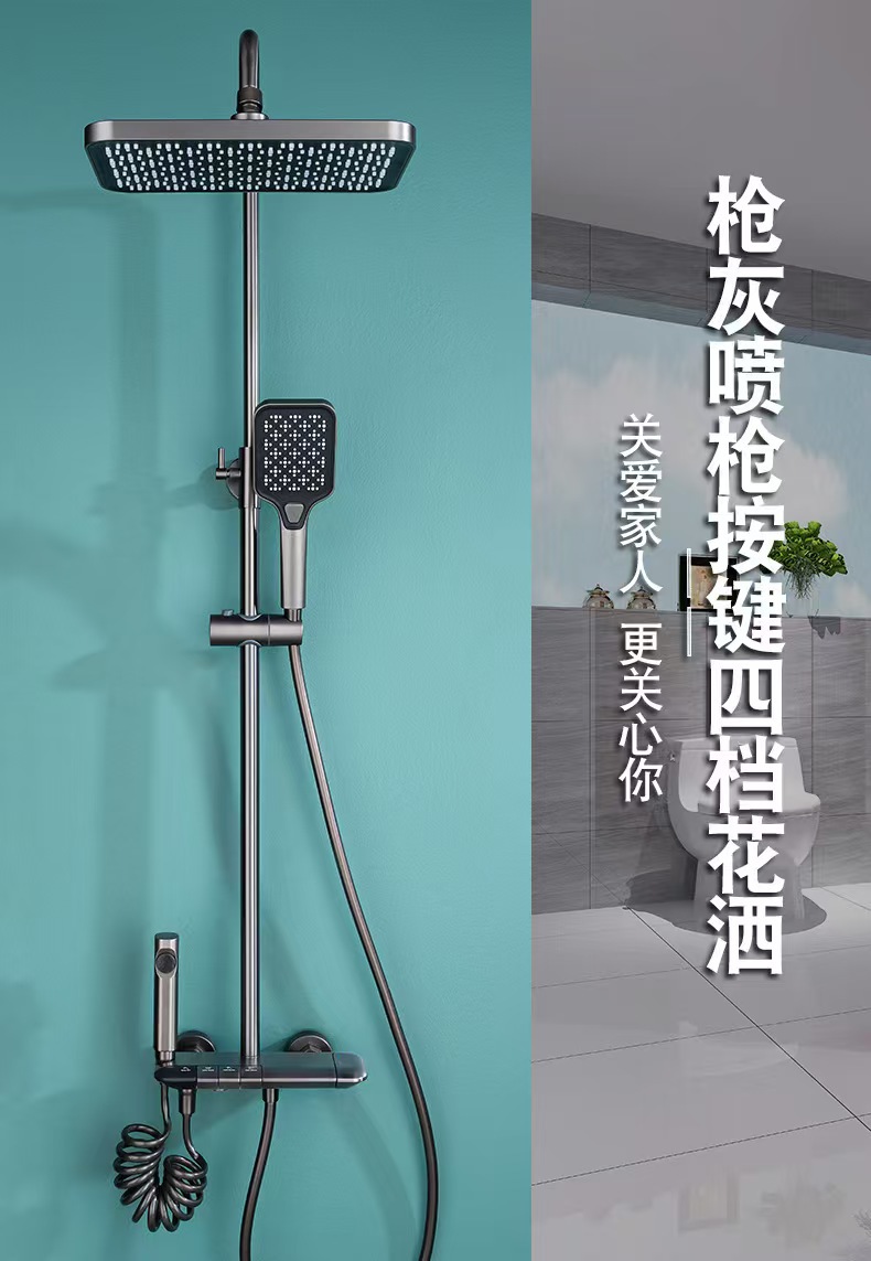 국경 간 화이트 건 그레이 샤워 세트 샤워 가정용 샤워 노즐 프레스 탑 스프레이 핫 및 콜드 크림 샤워