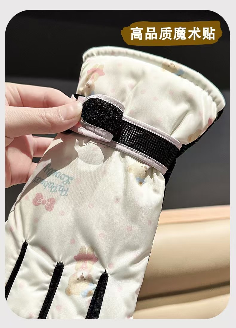 귀여운 곰 스키 장갑 여성용 겨울면 따뜻한 냉간 방수 기모 두꺼운 터치 스크린 미끄럼 방지 사이클링 장갑