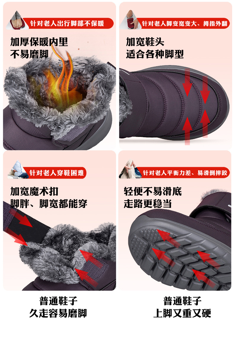 겨울 플러스 사이즈 대외 무역 북동쪽 큰면 신발 기모 노인을위한 두꺼운 신발 미끄럼 방지 스노우 부츠 부모 따뜻한 신발 면화 부츠스토어 가기