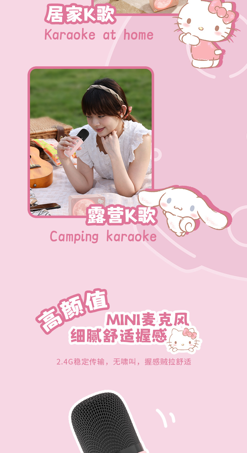 산리오 달 여행 블루투스 스피커 마이크 일체형 무선 소형 스피커 만화 야간 조명 스피커