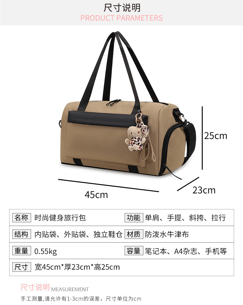 짧은 거리 휴대용 여행 가방 학생 학교 수하물 가방 대용량 저장 가방 스포츠 수영 피트니스 가방 요가 가방