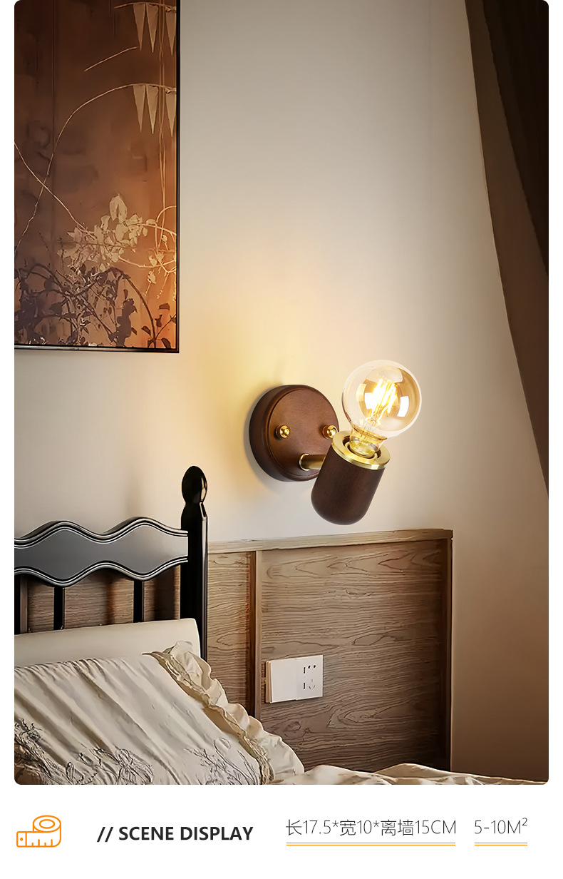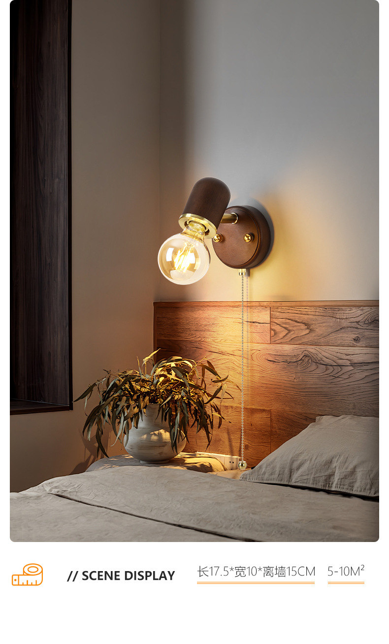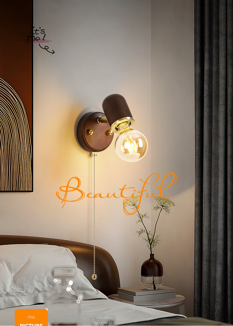 창조적 인 골동품 벽 램프 스위치 침대 옆 벽 램프 거실 발코니 통로 카페 벽 램프와 간단한 단단한 나무