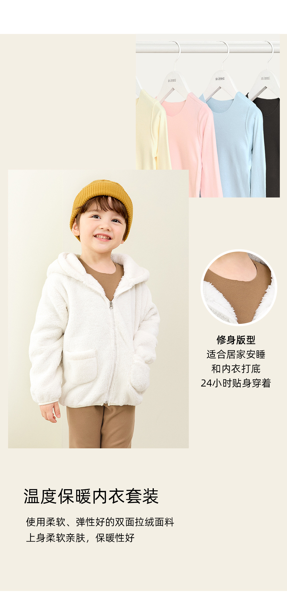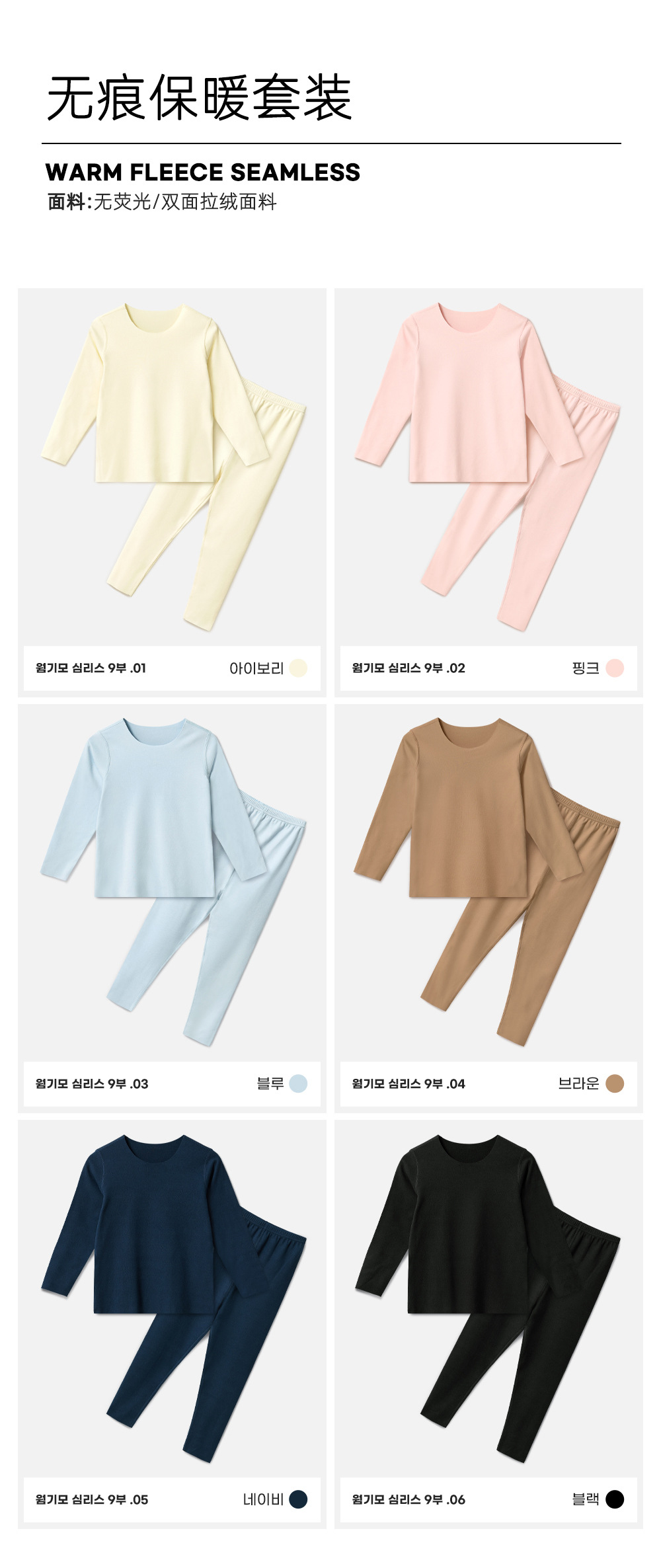 미상 어린이 가을 겨울 열 속옷 세트 소년 소녀 아기 잠옷 라운드 넥 슬림 핏 No Mark A스토어 가기