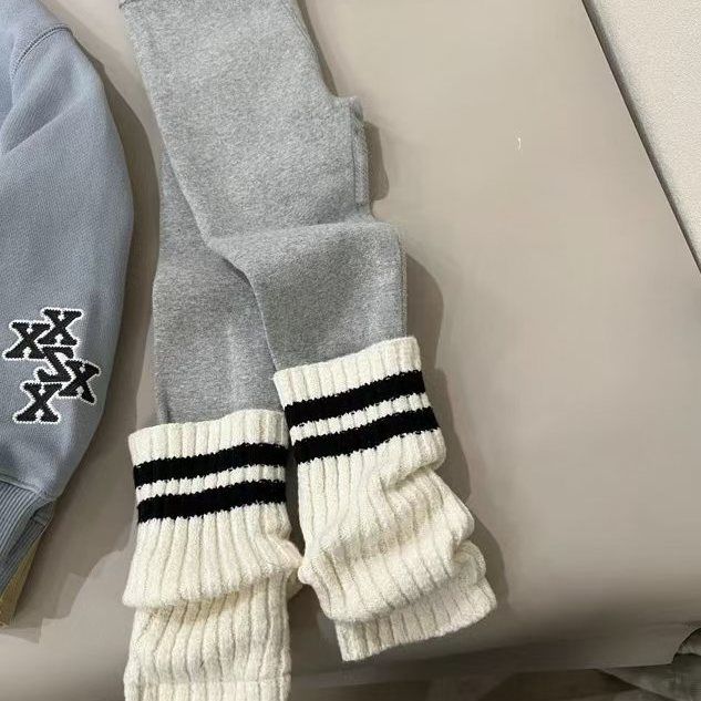 큰 어린이를위한 소녀 유행 바느질 양말 레깅스 가을 및 겨울 새로운 색상 매칭 스트라이프 스포츠 패션 캐주얼 바지스토어 가기