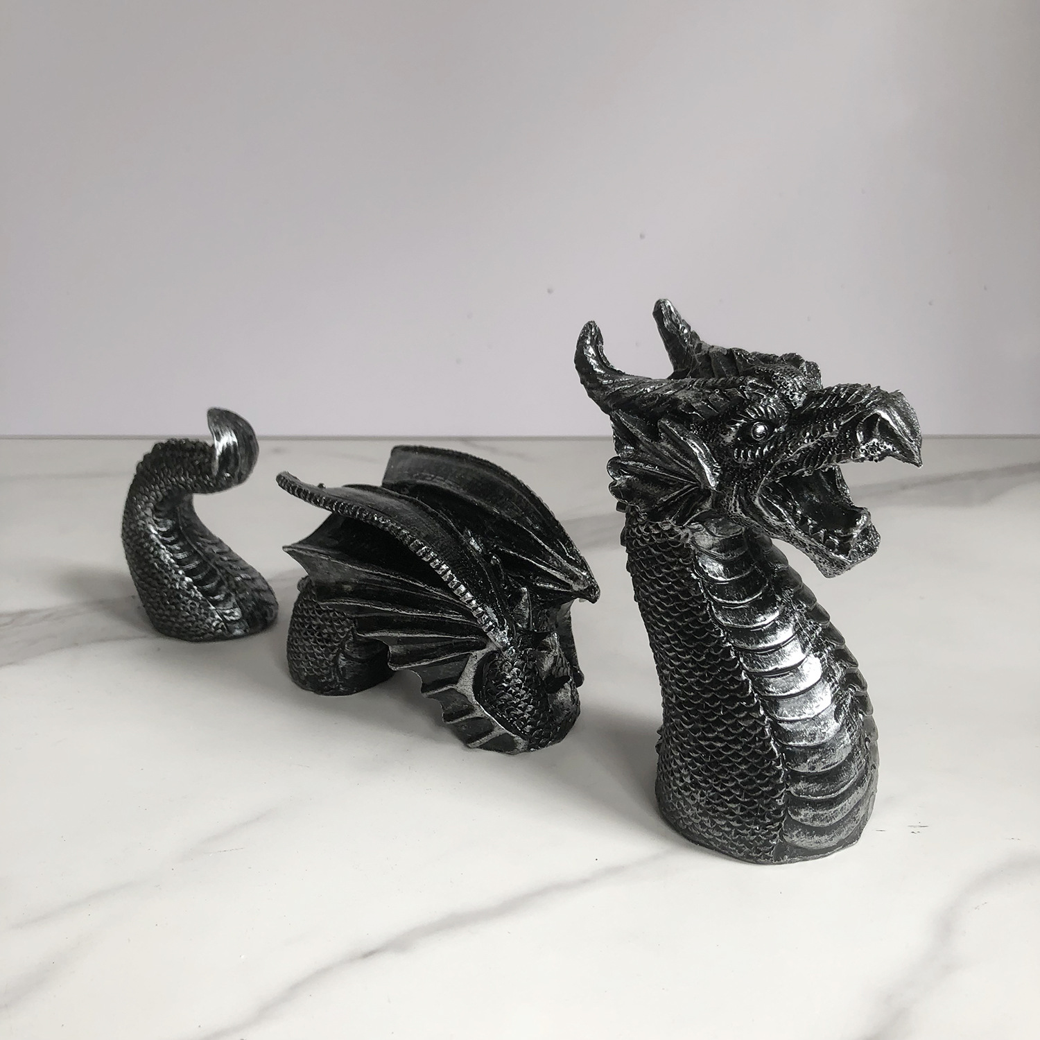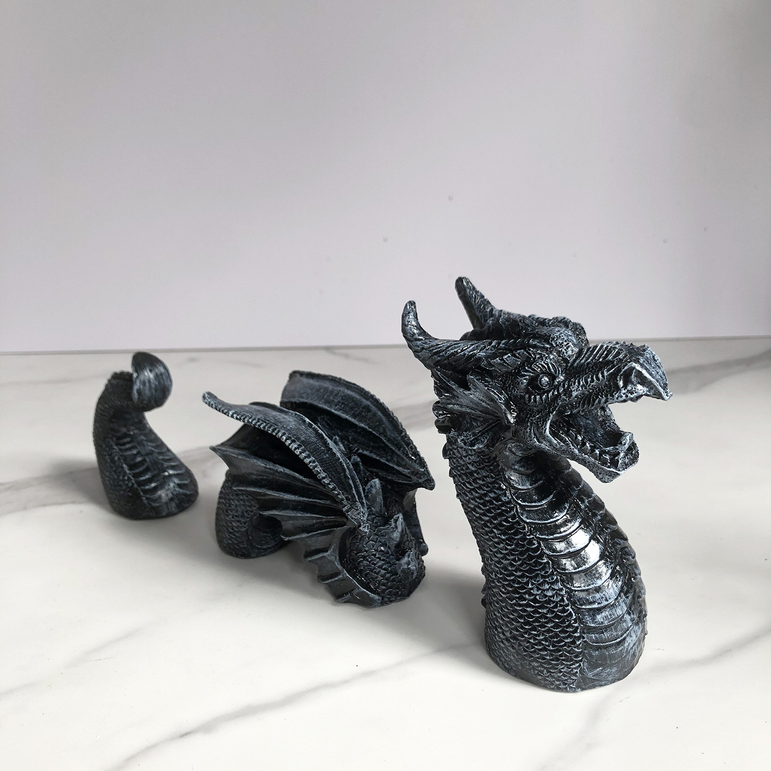 야외 재미 고딕 드래곤 가든 3 용 장식 동상 안뜰 아트 수지 드래곤 동상 장식