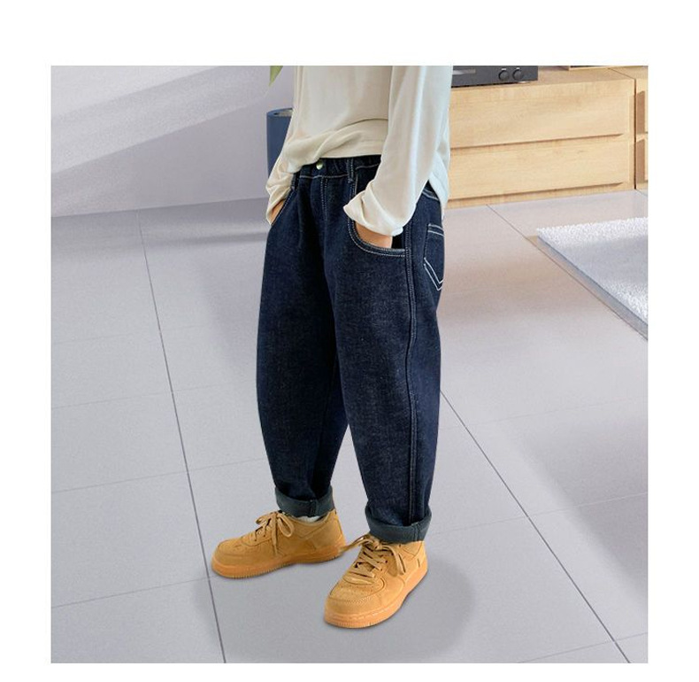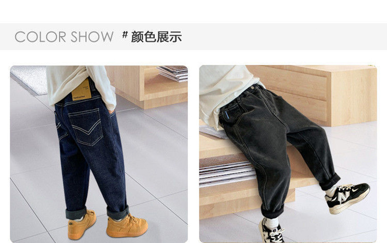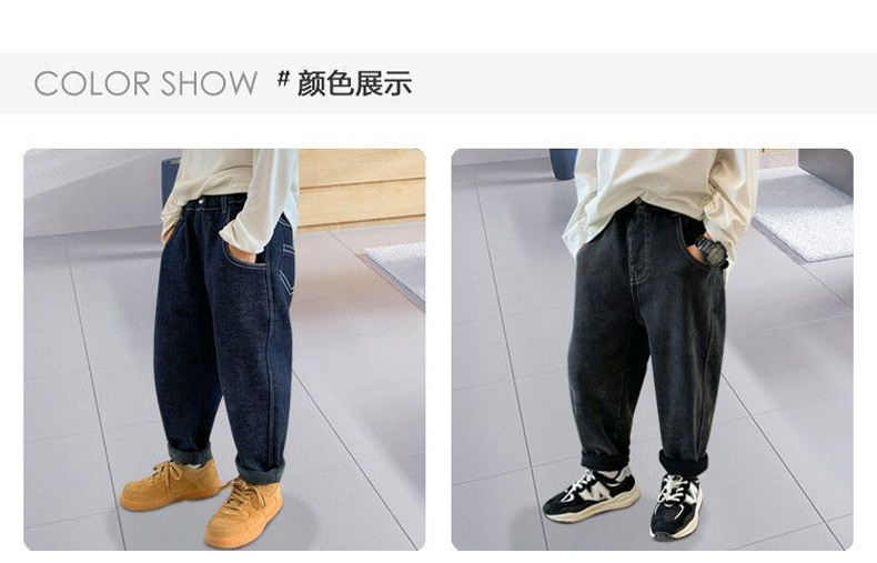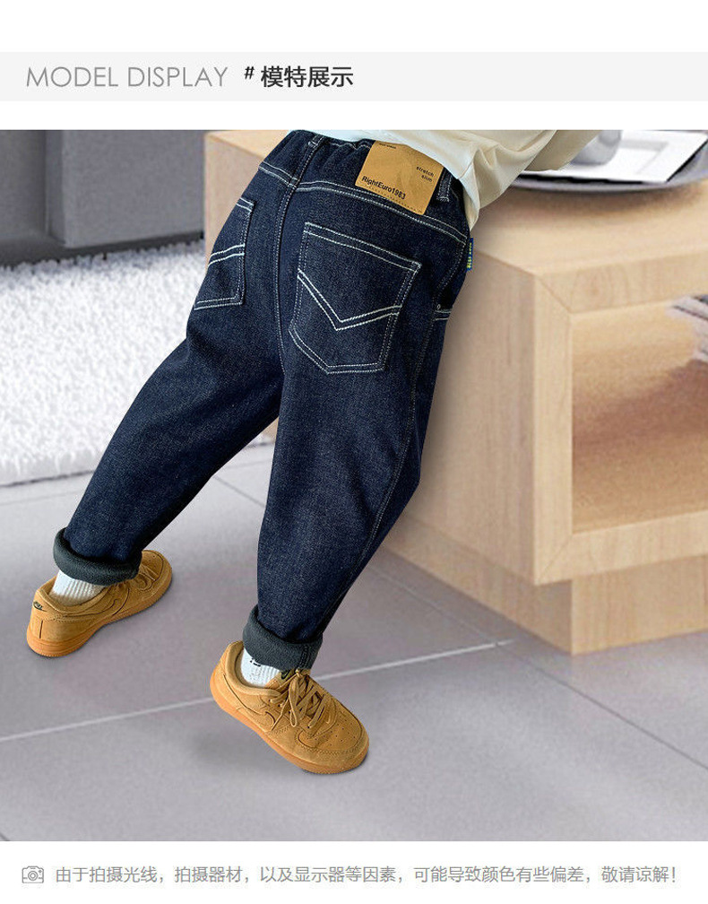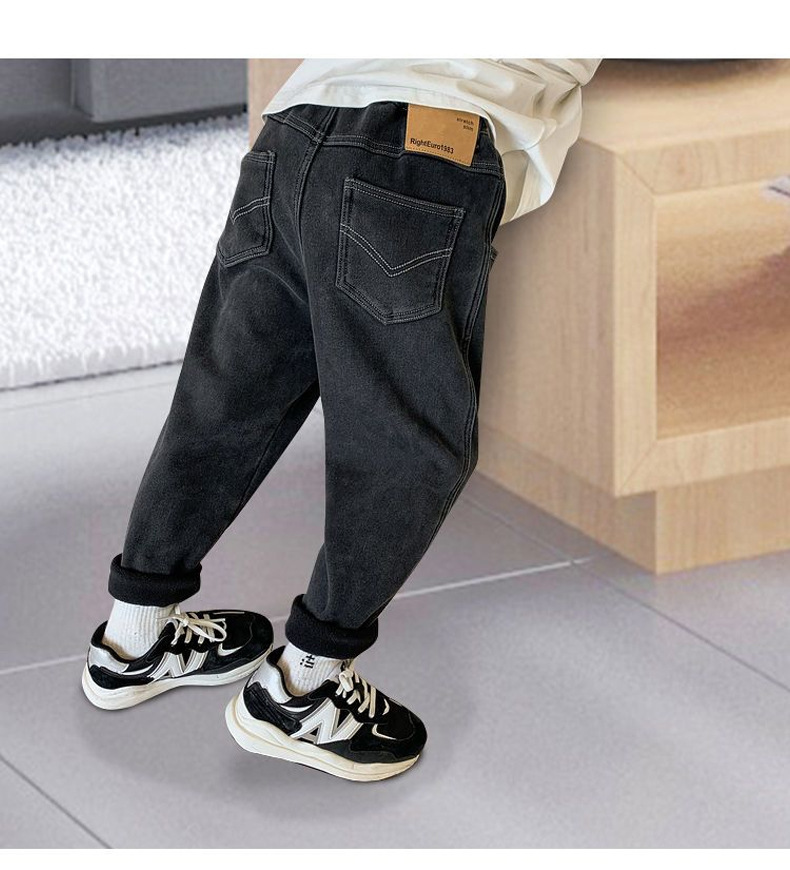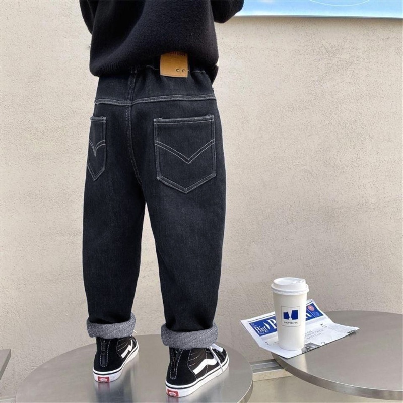 소년 기모 청바지 2024 겨울 새 기모 두꺼운 어린이 바지 소년 원피스 벨벳 캐주얼 아동복스토어 가기