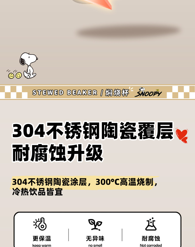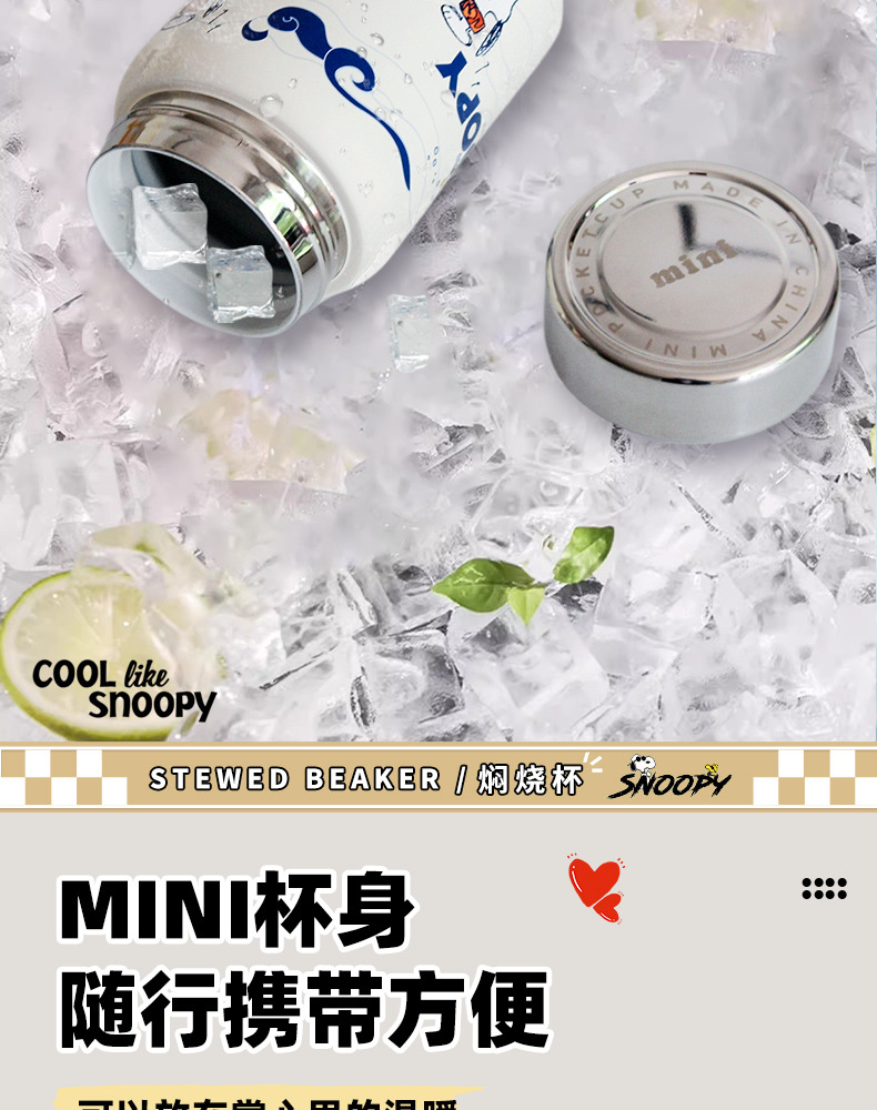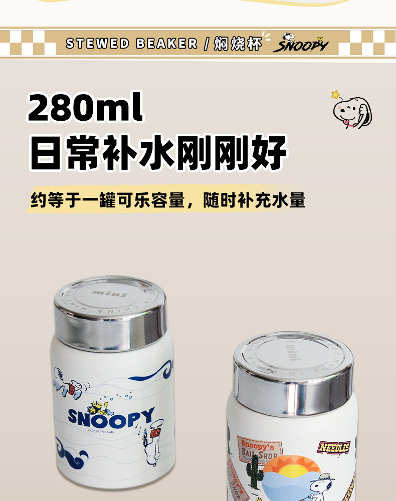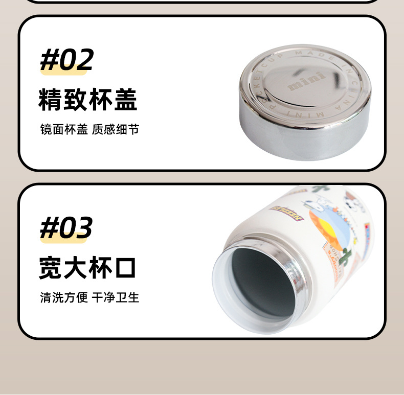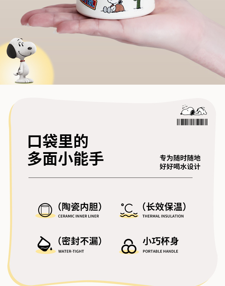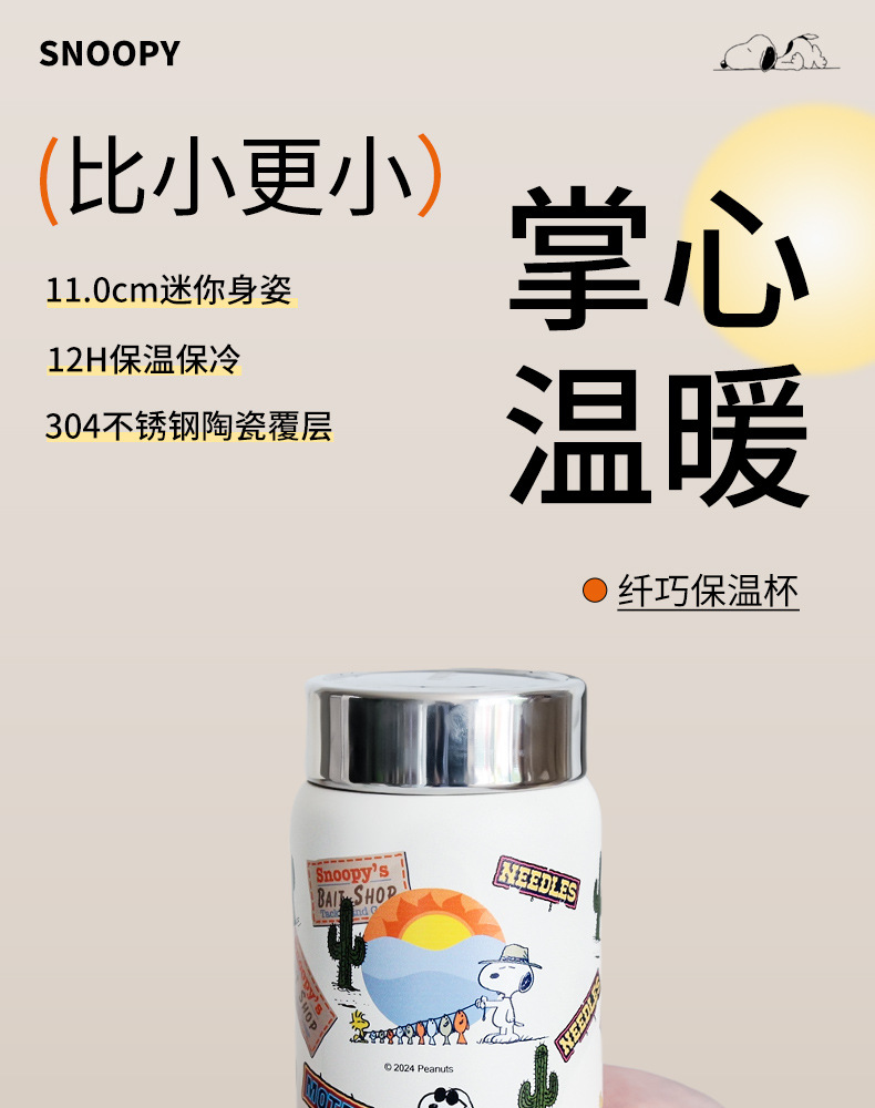 정품 스누피 진공 단열컵 세라믹 내부 스테인리스 물컵 대형 입구 자동차 컵 미니 휴대용 컵
