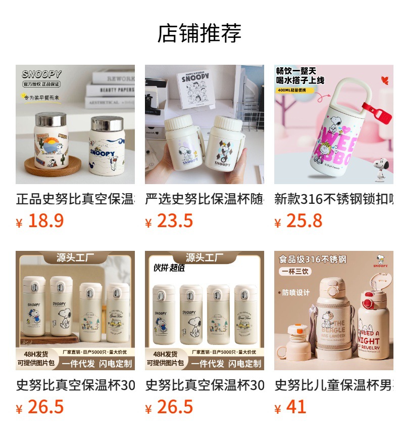 정품 스누피 진공 단열컵 세라믹 내부 스테인리스 물컵 대형 입구 자동차 컵 미니 휴대용 컵스토어 가기